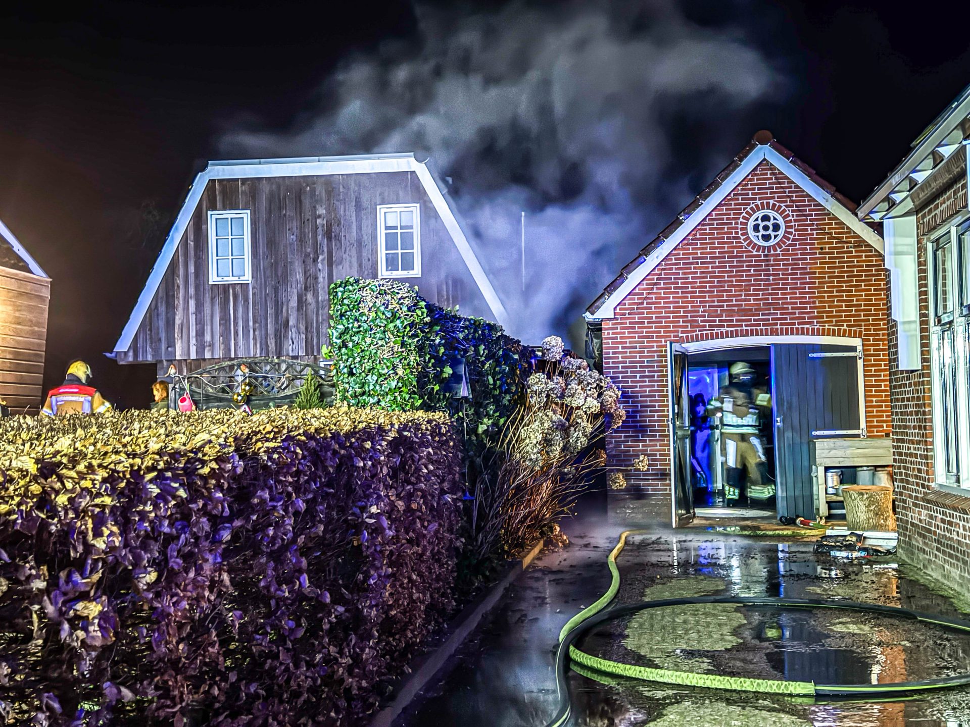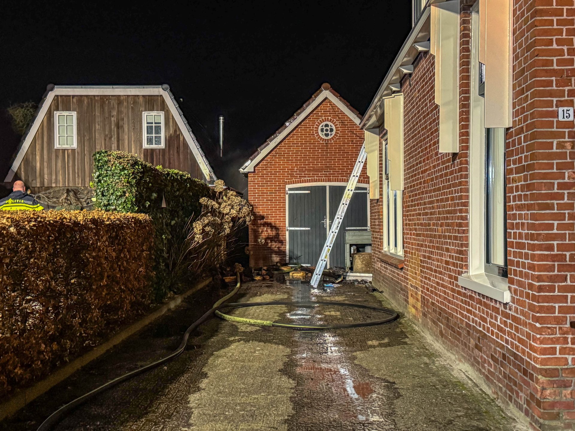 Rond 20:00 uur werd de brand ontdekt bij een schuur aan de Jan Binneswei. Het vuur was overgeslagen naar de schuur die flink beschadigd is geraakt aan de buitenzijde.