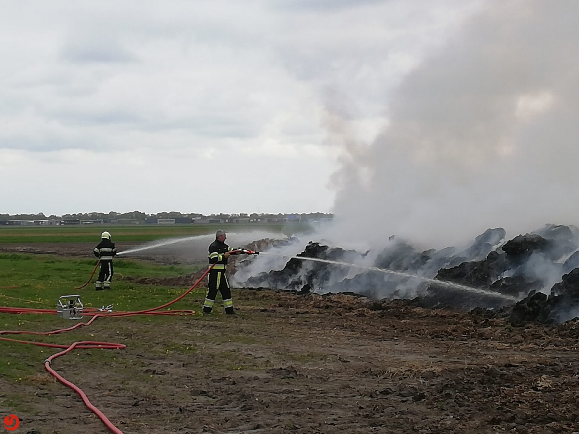 De brandweer heeft een loonbedrijf opgeroepen om de bulten uit elkaar te trekken zodat ze goed konden blussen.