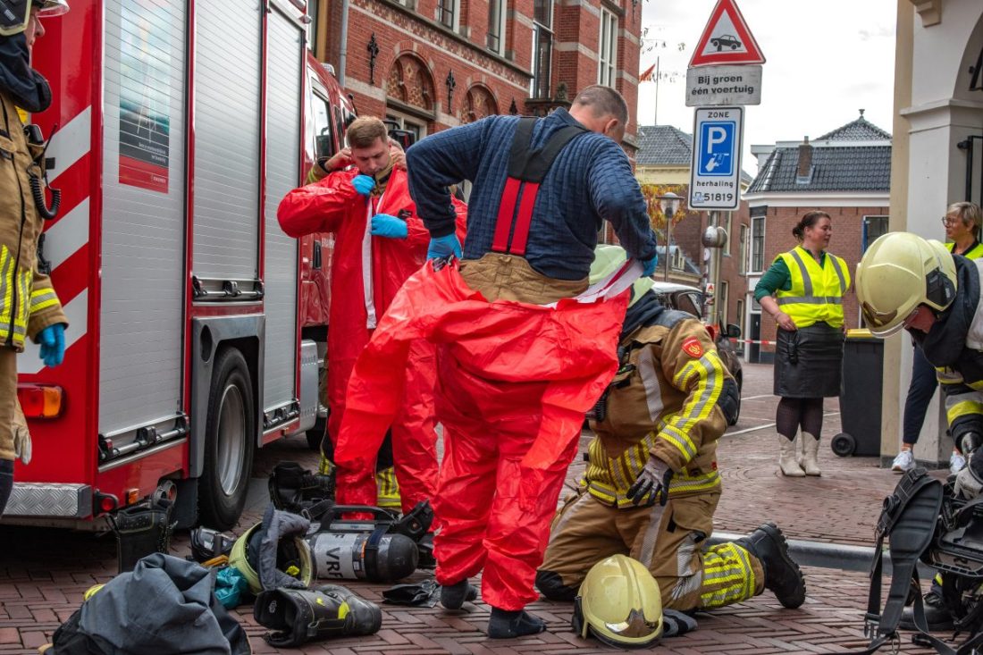 Brandweerlieden gingen in beschermende kleding het pand binnen om metingen te verrichten. Dit gebeurde uit voorzorg vanwege mogelijk besmettingsgevaar. Uit de metingen bleek uiteindelijk dat er geen gevaarlijke stoffen aanwezig waren.