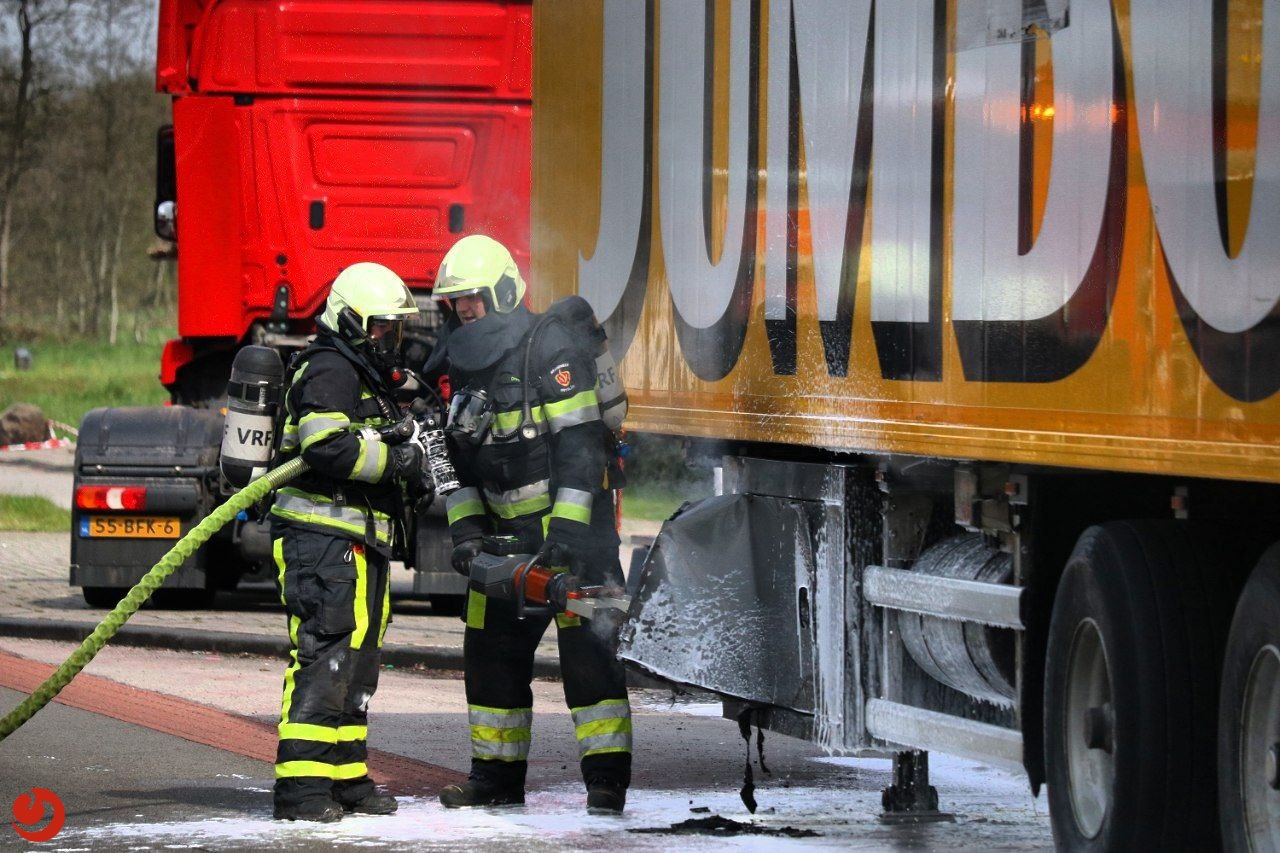 DRACHTEN – De hulpdiensten zijn maandagochtend ingezet naar aanleiding van een melding van een vrachtwagenbrand op de Folgeren. Een trailer had vlam gevat, maar door snel optreden kon erger voorkomen worden.