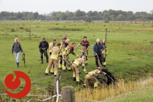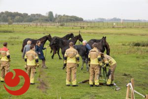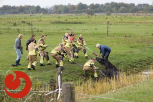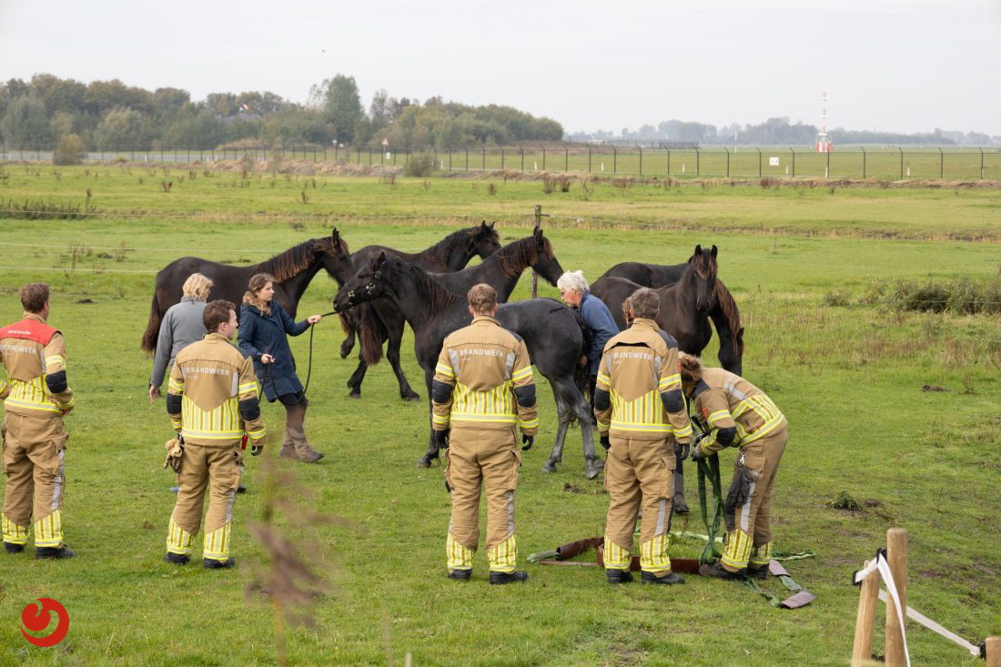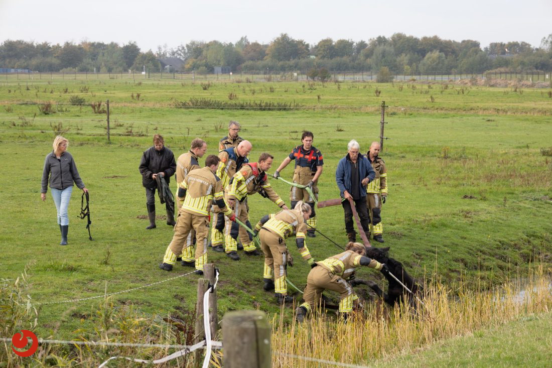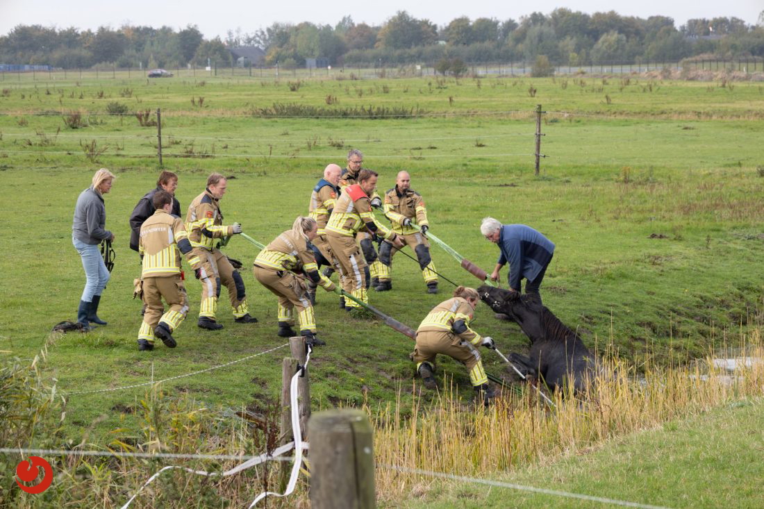 De brandweer ontving de melding omstreeks kwart over tien. Met touwen en vereende krachten kon het paard uit de sloot worden getrokken. Het paard bleef in eerste instantie uitgeput liggen, maar stond daarna op eigen kracht weer op en maakt het goed.