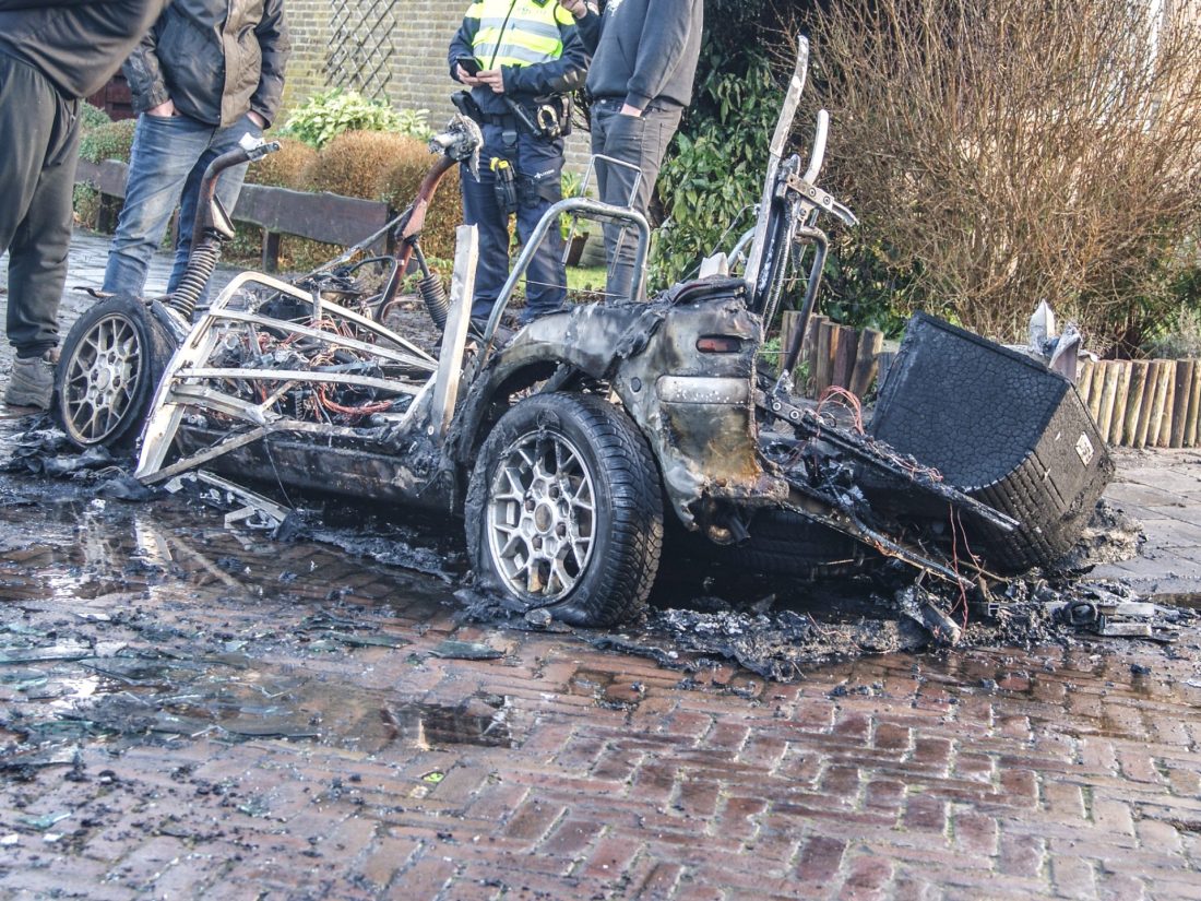 Bij de brand raakte niemand gewond. Het wrak is door een bergingsbedrijf afgevoerd.