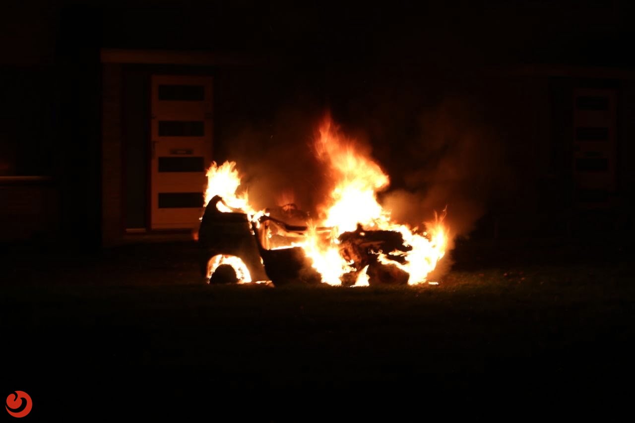DRACHTEN – Een geparkeerde brommobiel is afgelopen nacht in vlammen opgegaan. De brand werd net na middernacht ontdekt.