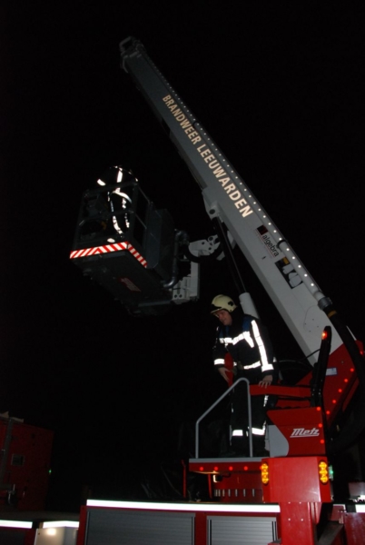 Bij aankomst van de brandweer kwamen de vonken al zichtbaar uit de schoorsteen en er werd snel besloten om de hulp van de hoogwerker van Leeuwarden hierbij in te schakelen. Tijdens het wachten op de hoogwerker werd binnen de openhaard al van de wand gehaald zodat de brandweerlieden er van beide kanten goed bij konden komen.