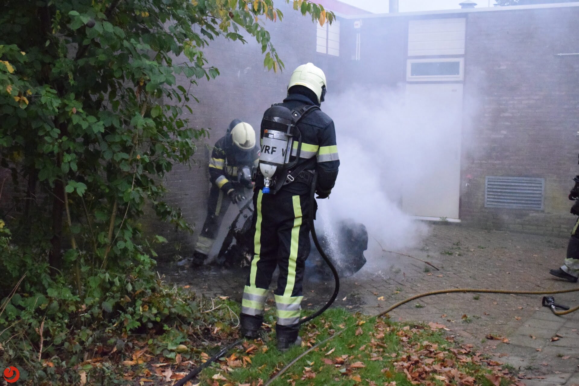 Hier was door de jeugd een container welke tegen een muur stond in brand gestoken. Een politieagent probeerde de brand met een poederblusser uit te krijgen maar het vuur laaide telkens weer op. De brandweerlieden hebben de brand geblust en vervolgens het dak geïnspecteerd.
