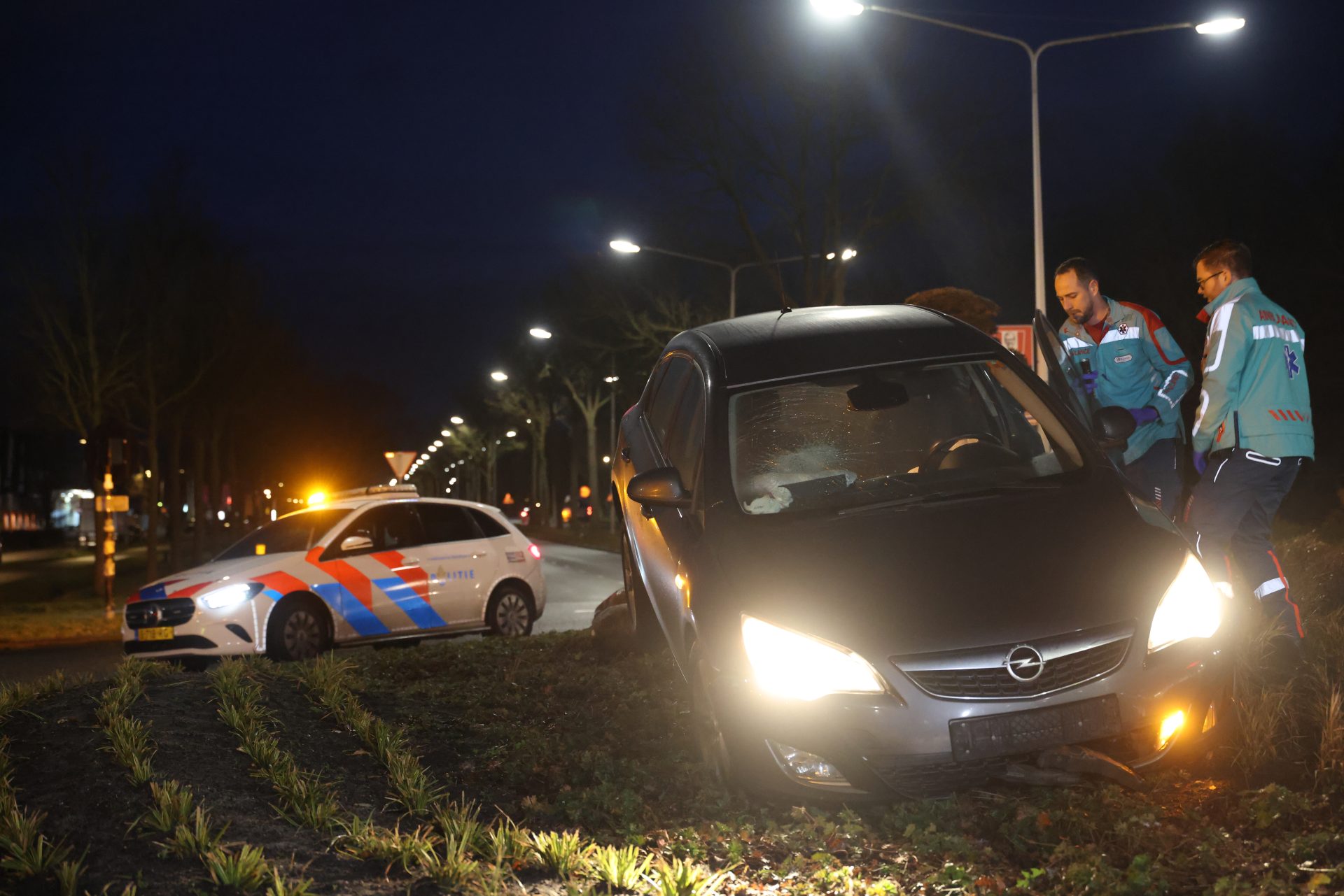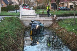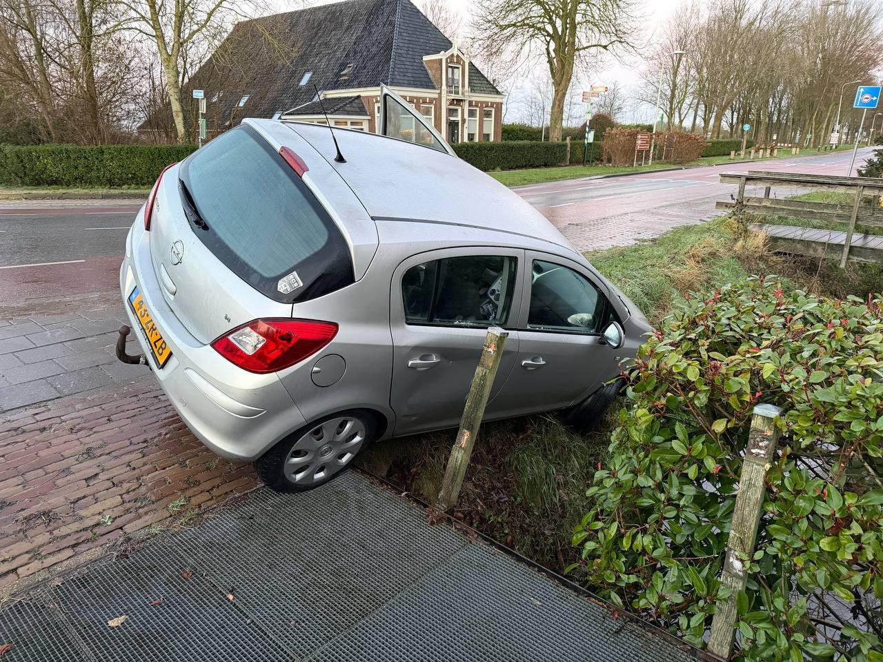 Op de Lytse Dyk in Sneek gleed een auto van de weg af en kwam in een sloot terecht. De bestuurder kon zelf uit de auto komen.