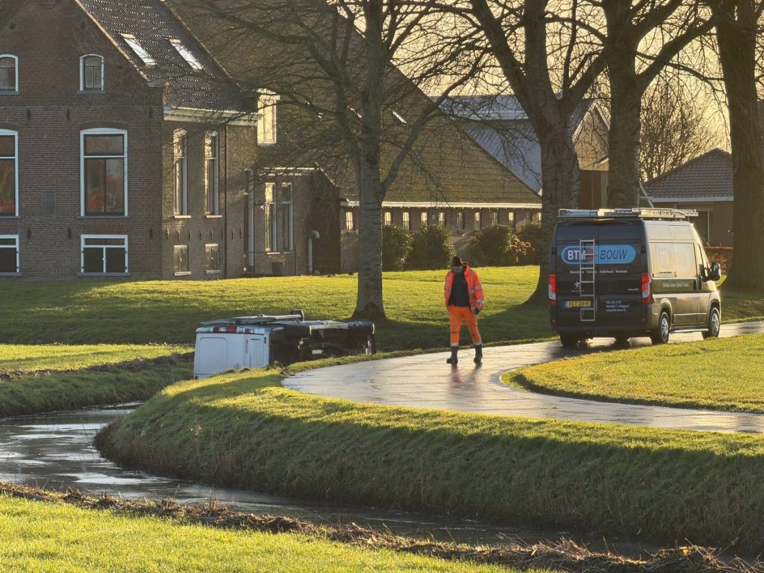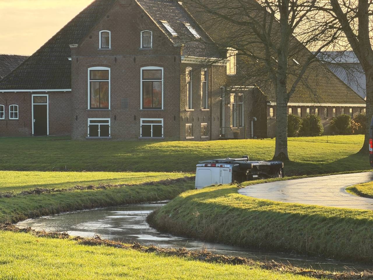 In Wytgaard kwam een busje op de zijkant in een sloot terecht. Voor zover bekend is er niemand gewond geraakt. Een berger heeft het busje uit de sloot getakeld.