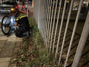 De gestolen fiets is met een politiebus afgevoerd en zal na onderzoek worden teruggeven aan de rechtmatige eigenaar.