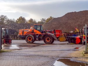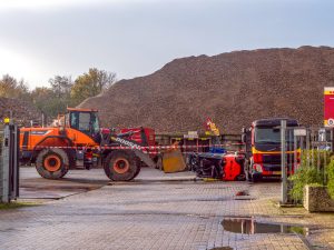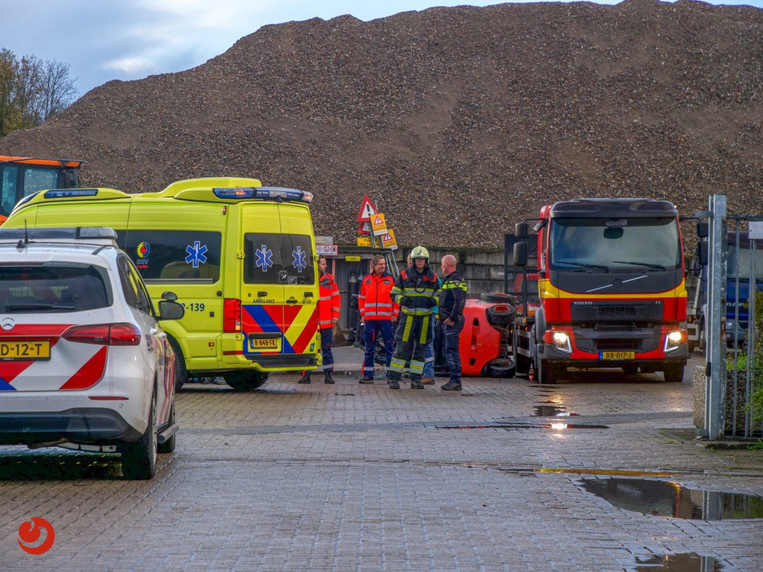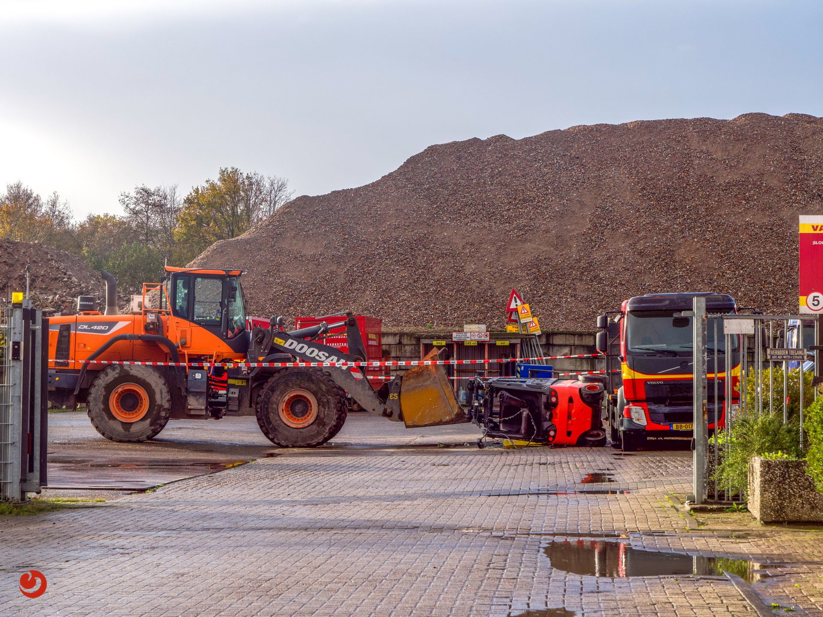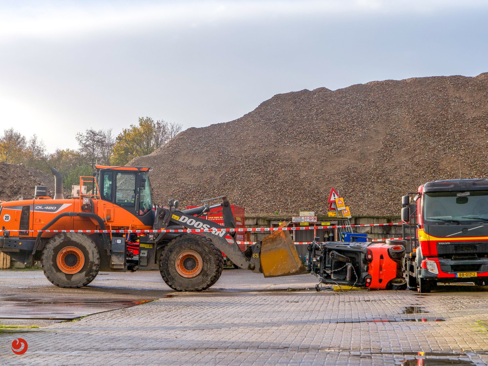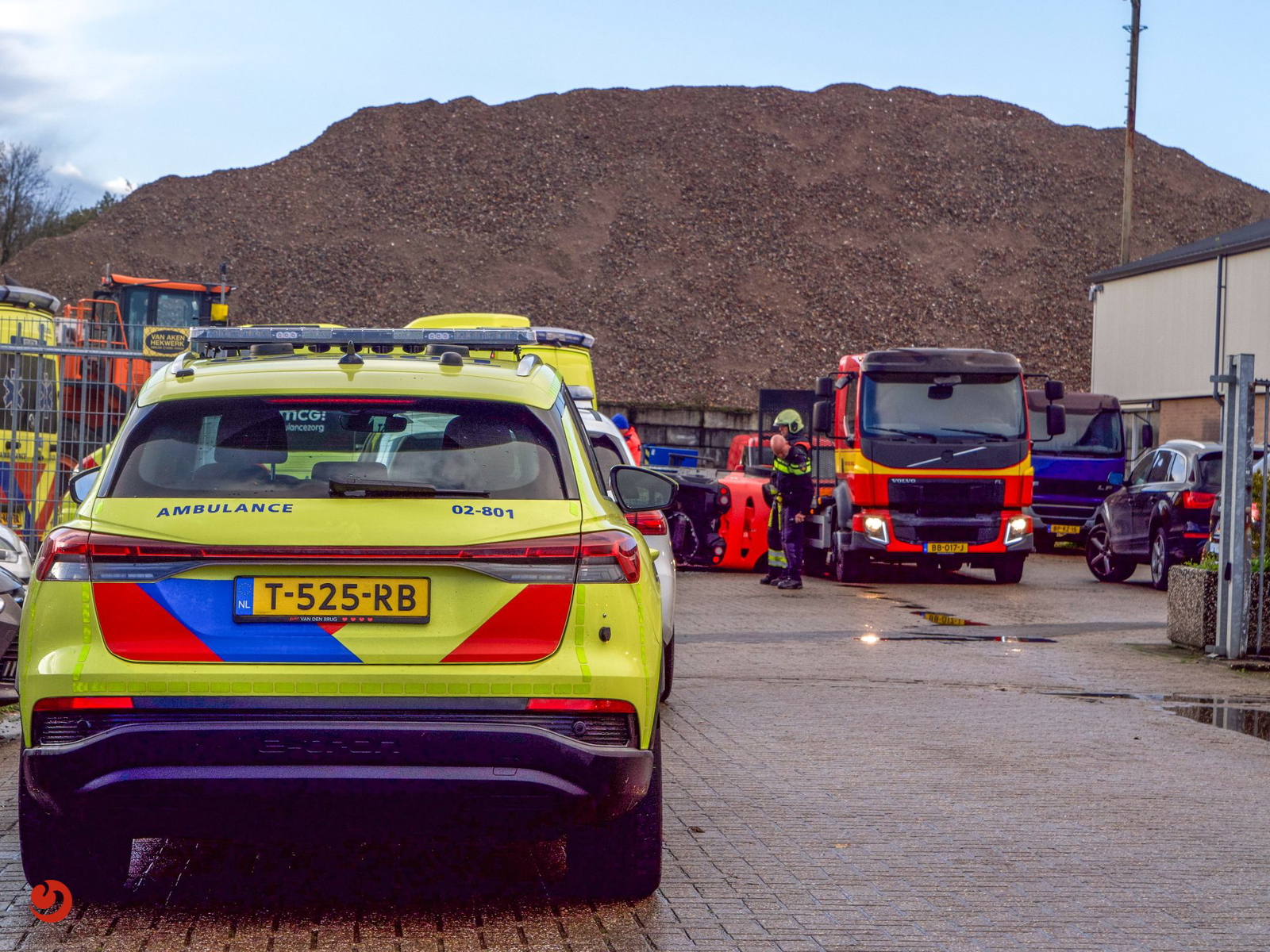 Even voor negen uur ging het mis. Op het terrein van het bedrijf is een heftruck omgevallen en op een persoon terechtgekomen. De heftruck werd met behulp van een wiellader omhoog getild, zodat het slachtoffer kon worden bevrijd.