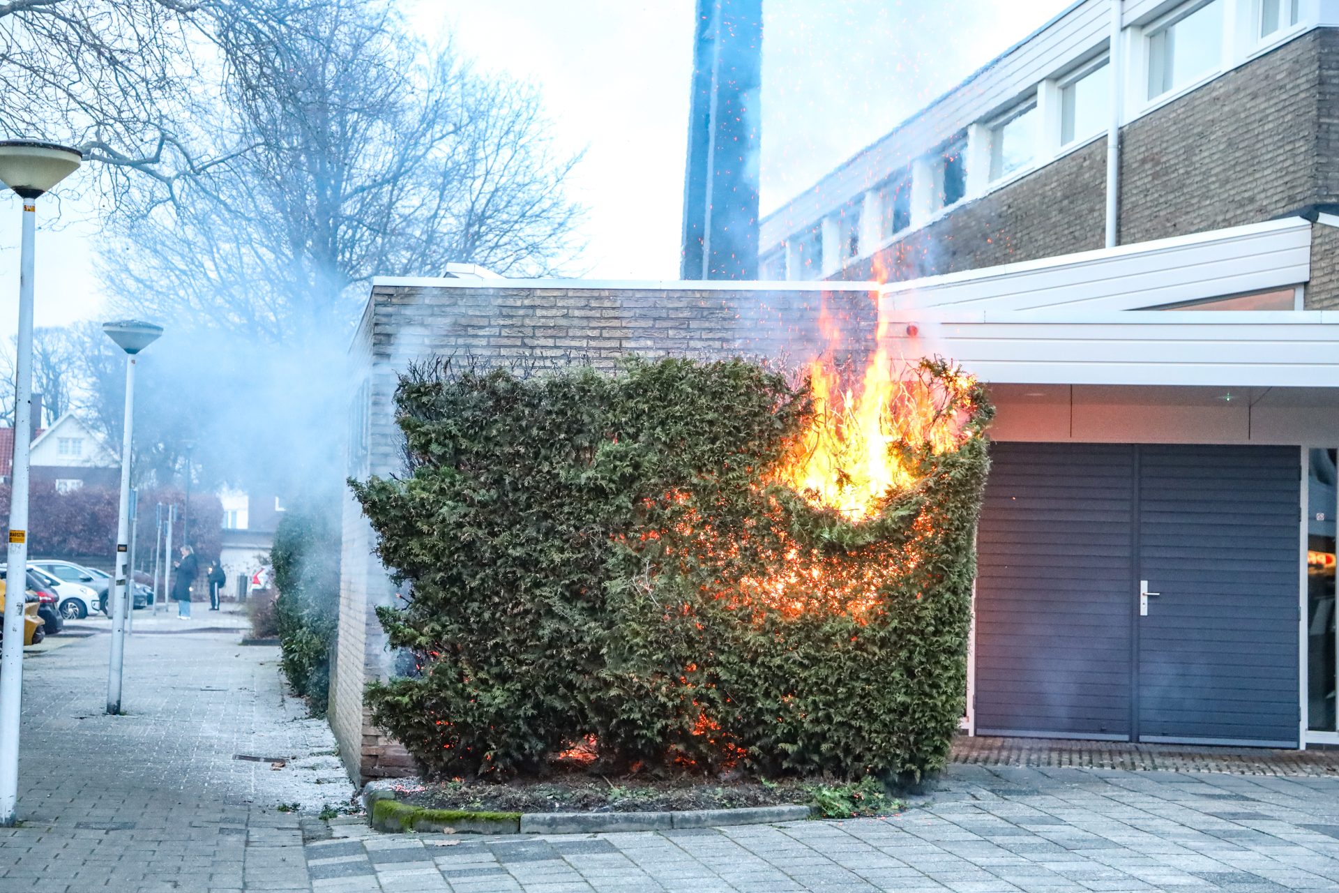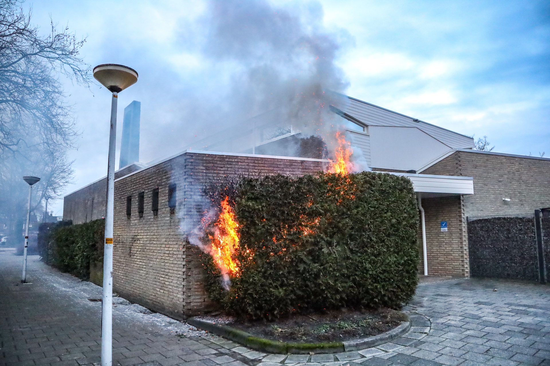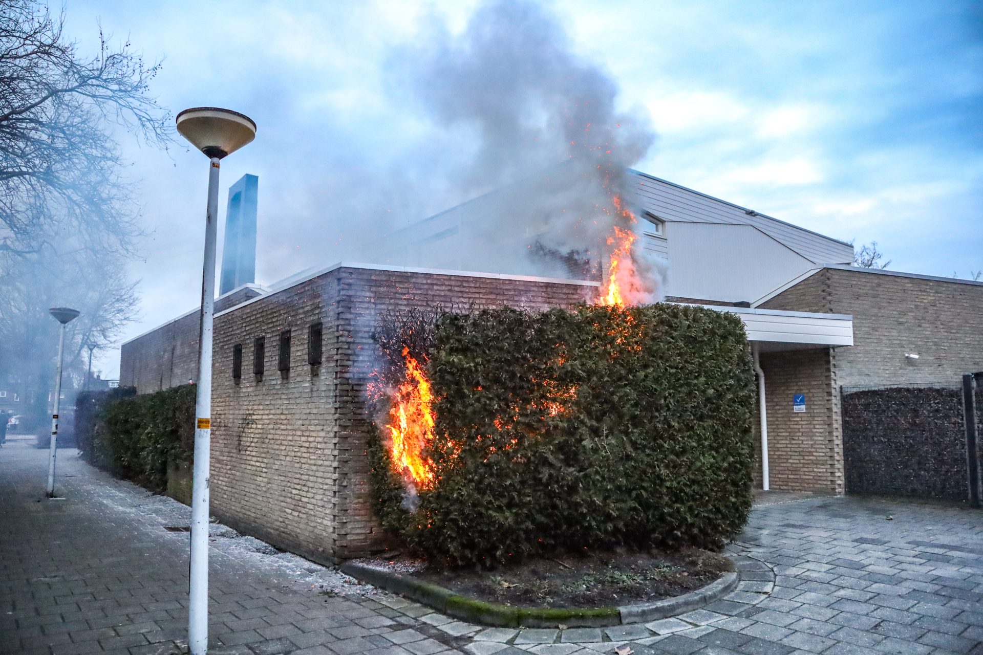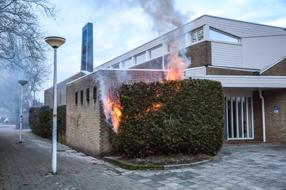 DRACHTEN – Een coniferenhaag is maandag aan het einde van de middag in brand geraakt tegen een kerk aan.