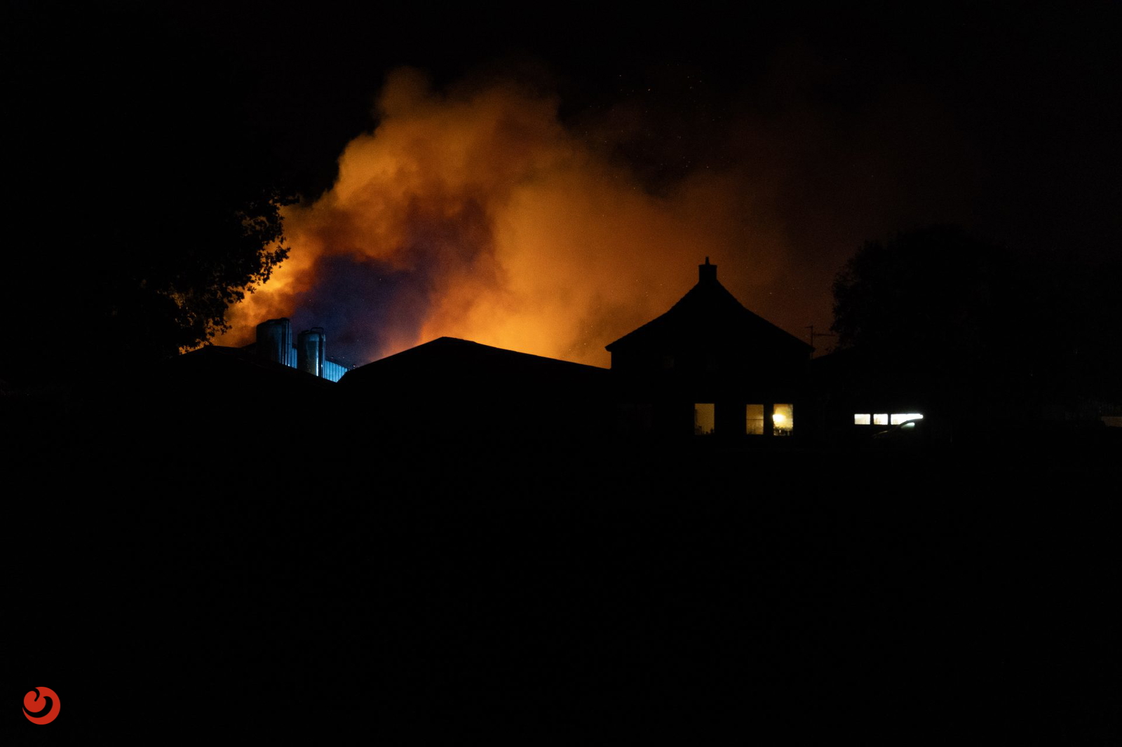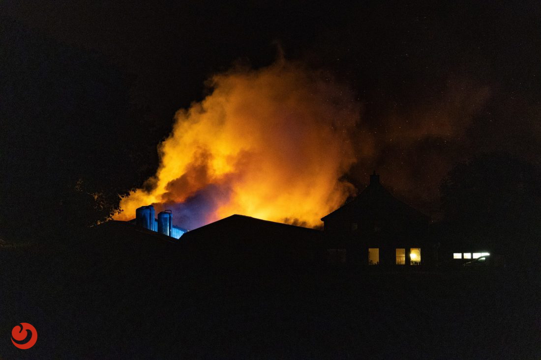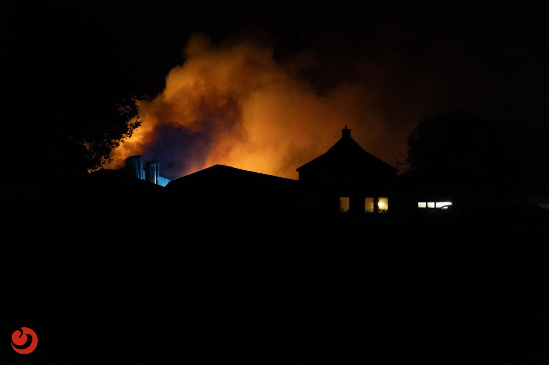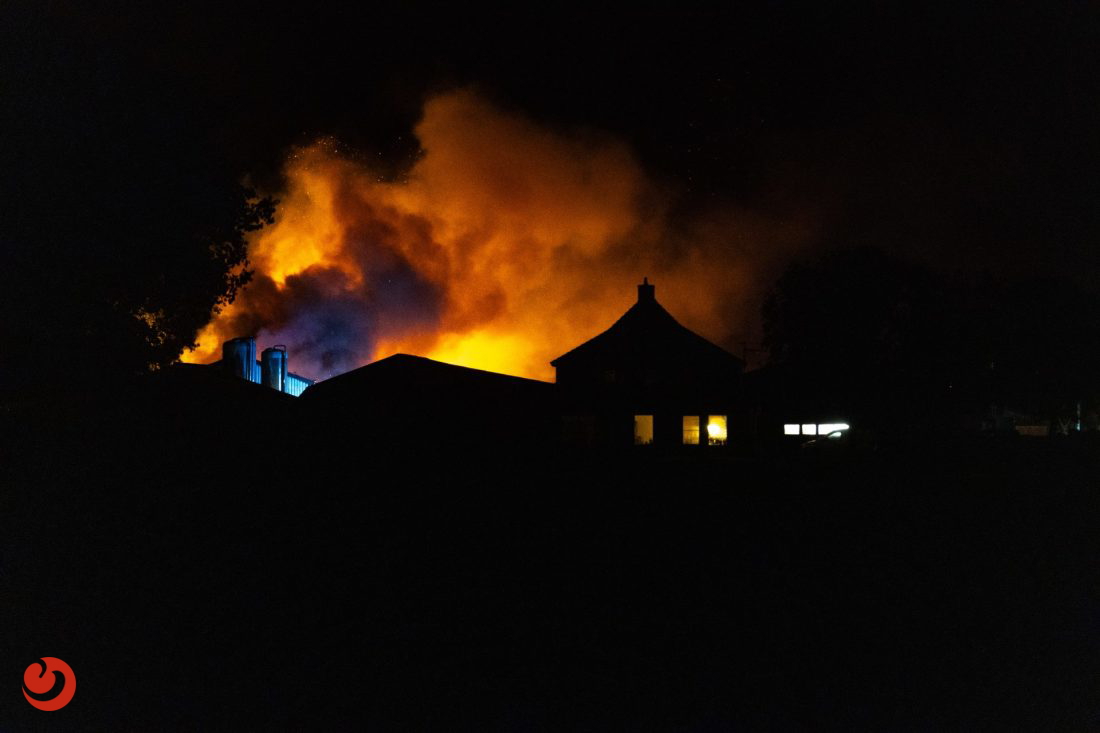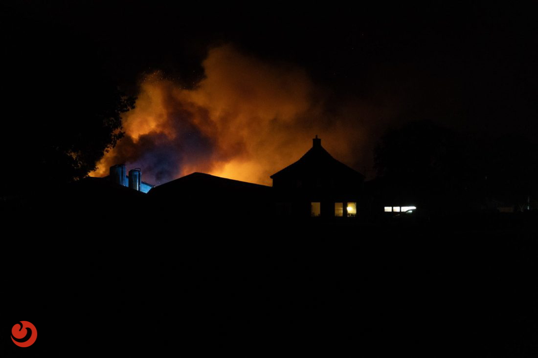 Rond 21:40 uur brak de brand uit in de schuur. Volgens de brandweer staat de schuur vol met stro en voertuigen. Er zijn geen dieren in de schuur aanwezig. De brandweer heeft opgeschaald naar ‘grote-brand’ waarop korpsen uit de regio zijn uitgerukt.