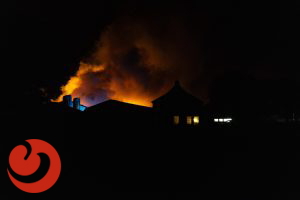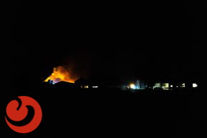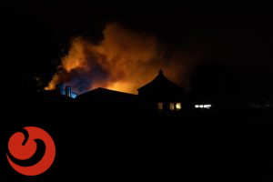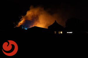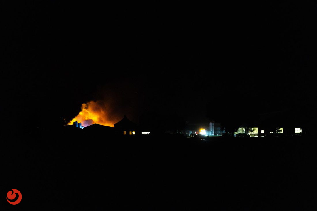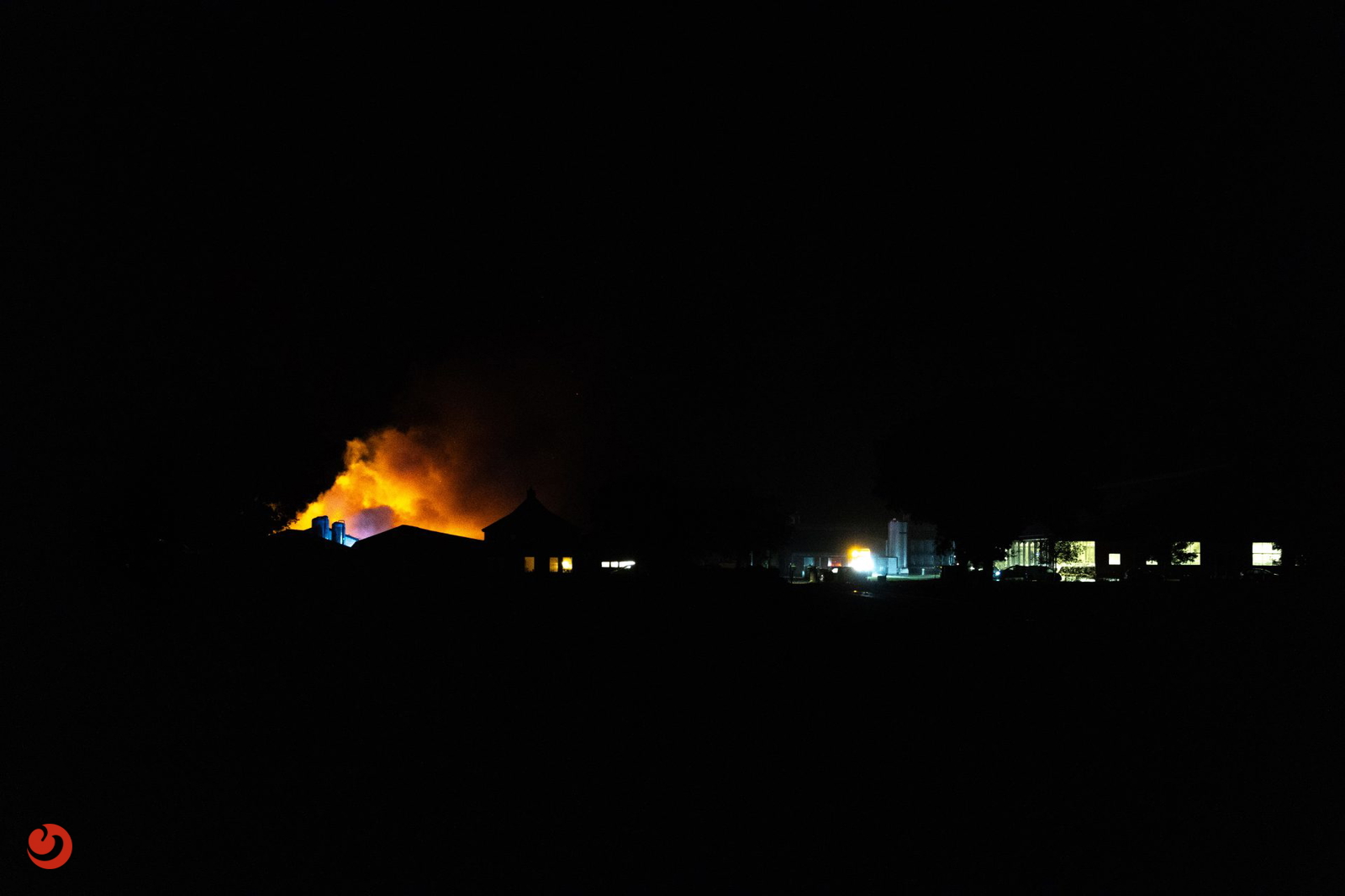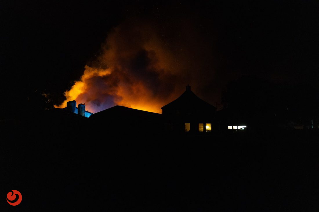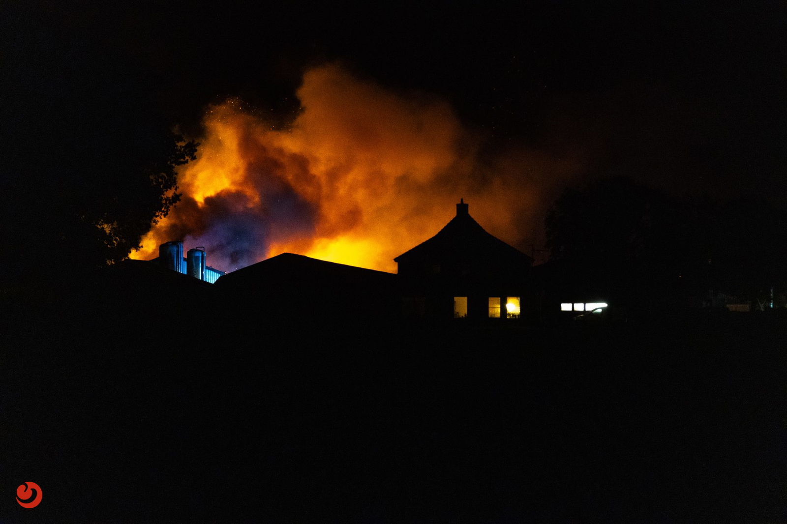 Rond 21:40 uur brak de brand uit in de schuur. Volgens de brandweer staat de schuur vol met stro en voertuigen. Er zijn geen dieren in de schuur aanwezig. De brandweer heeft opgeschaald naar ‘grote-brand’ waarop korpsen uit de regio zijn uitgerukt.