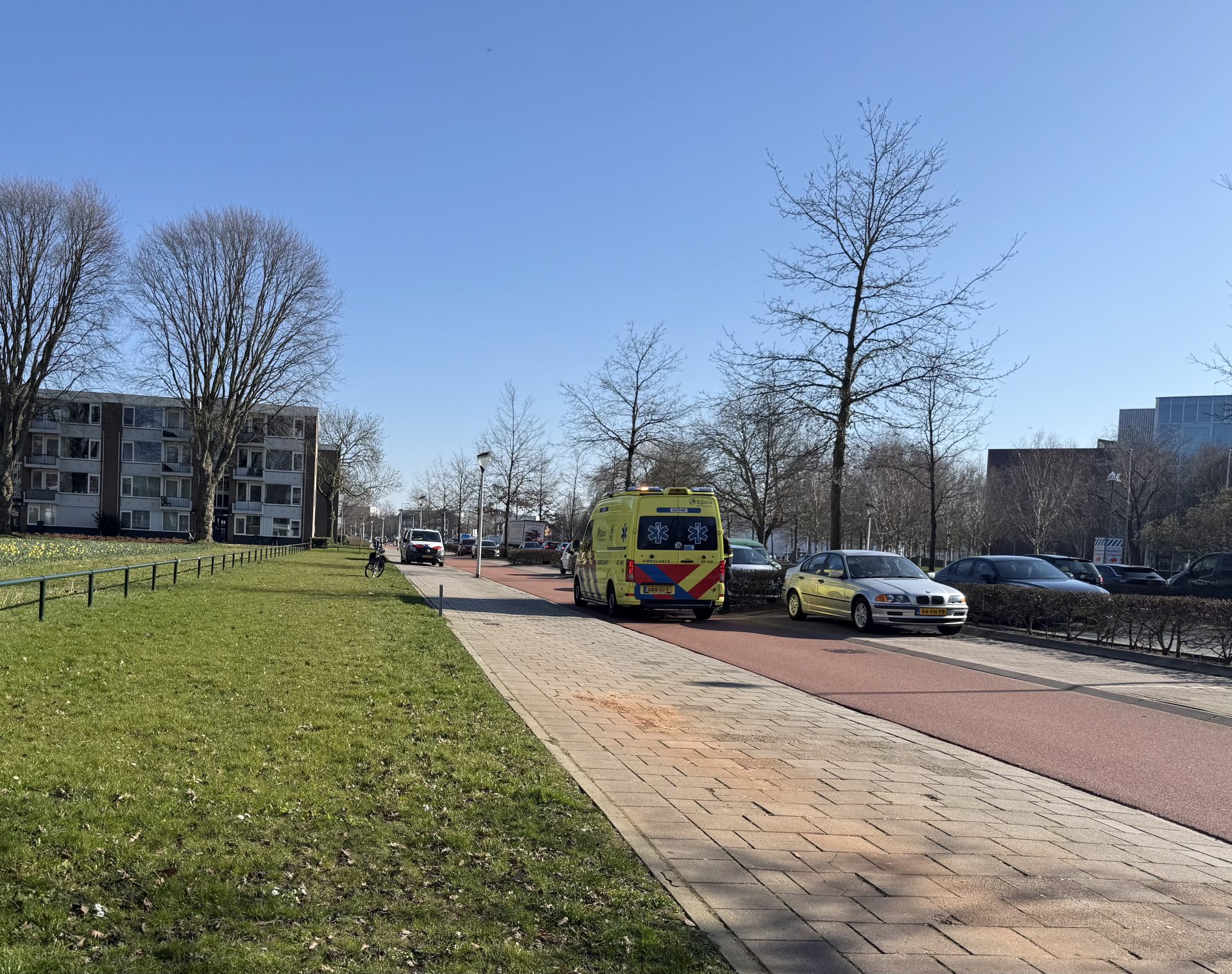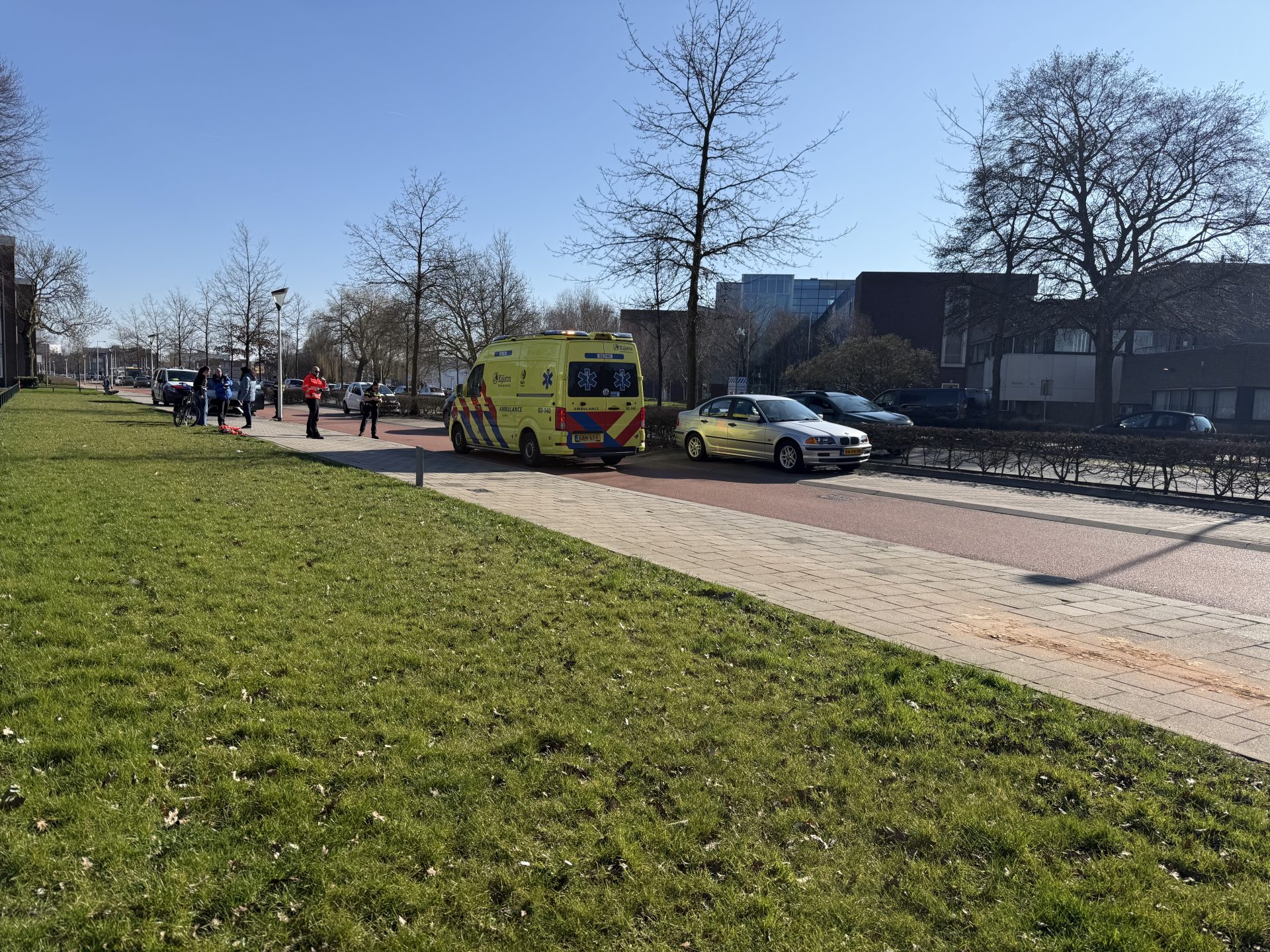 Politie en ambulance kwamen met spoed ter plaatse om hulp te verlenen. Na behandeling door ambulancepersoneel is de fietser per ambulance naar het ziekenhuis gebracht.