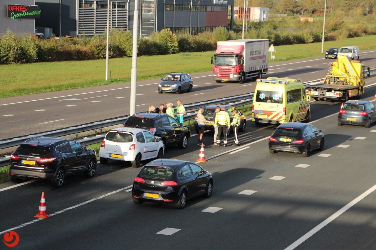 Rijkswaterstaat sloot een rijstrook af. Dit zorgde voor een vijf kilometer file in de richting van Groningen. Ook op de Waldwei ontstond een file. Berger BCF heeft de auto’s afgesleept. Hoe de botsing heeft kunnen gebeuren is niet bekend.