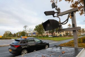 LEEUWARDEN – Een focusflitser aan de Heliconweg is zwartgeblakerd door brandstichting.