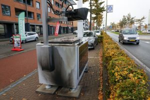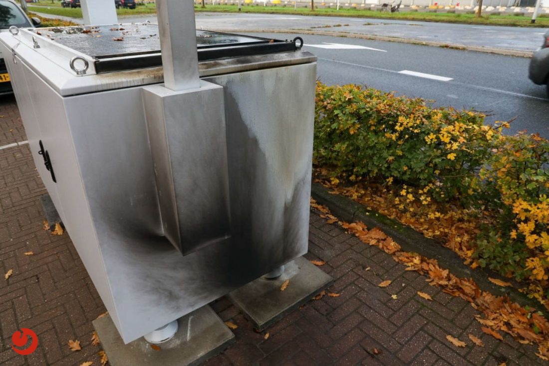 Rondom de paal hangt een sterke brandlucht. Enkele delen van het apparaat zijn zwart door de brand. Eerder in de week was er al een sticker op geplakt, deze was deels weer verwijderd. Zover bekend is er niemand aangehouden voor de brandstichting.