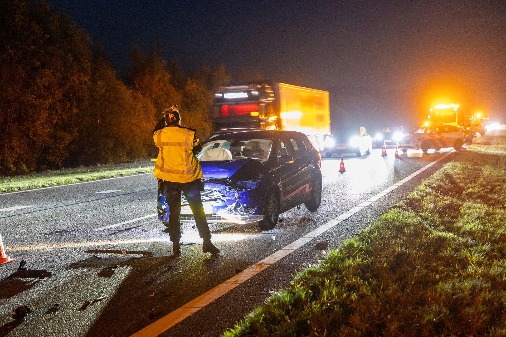 Rond 17.35 uur botsten de voertuigen net voor de afrit Terwispel op elkaar. Politie en ambulance kwamen met spoed ter plaatse. Ambulancepersoneel heeft de inzittenden van de betrokken auto’s gecontroleerd, maar voor zover bekend raakte niemand gewond.