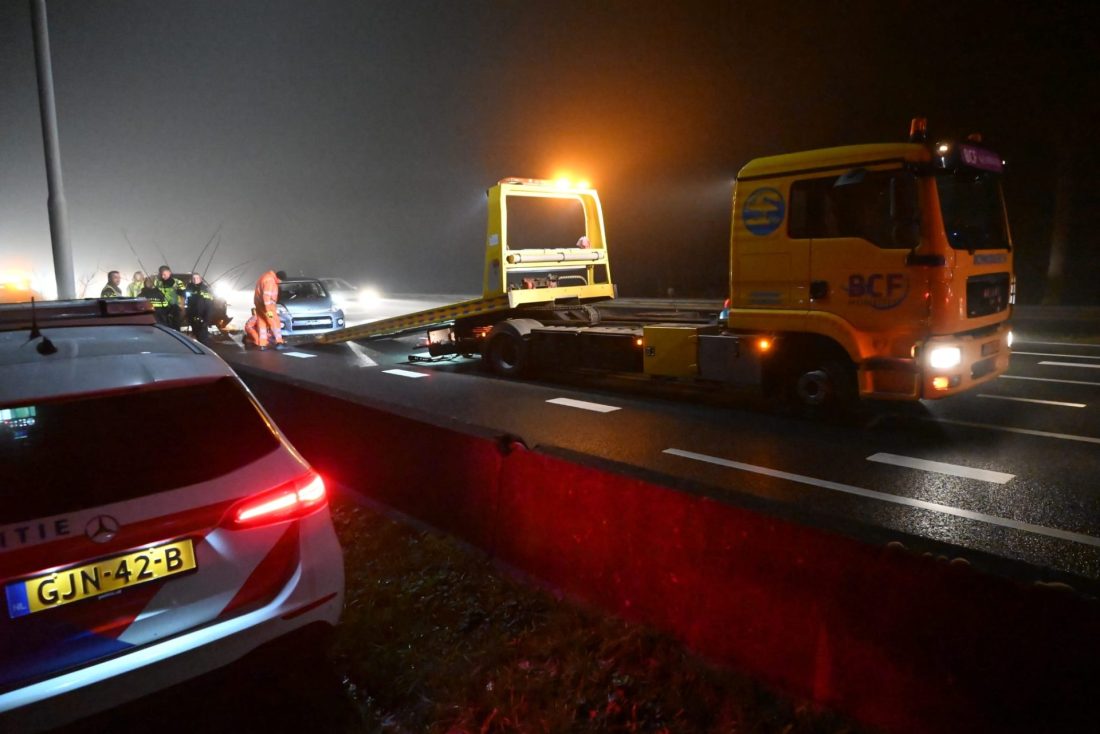 De politie zette een deel van weg af voor het verkeer in afwachting van een berger.