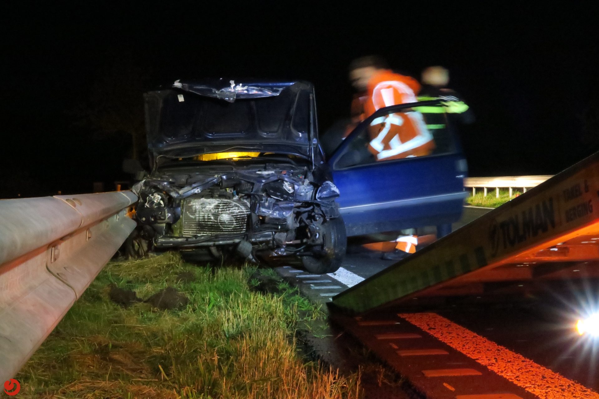 DONKERBROEK – Een automobiliste is zaterdagavond met haar auto tegen de vangrail gebotst op de N381.