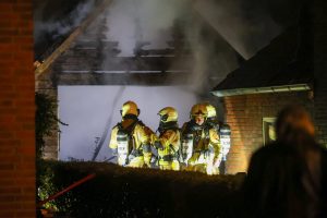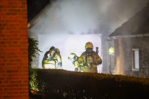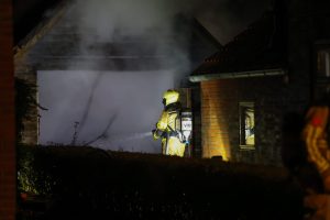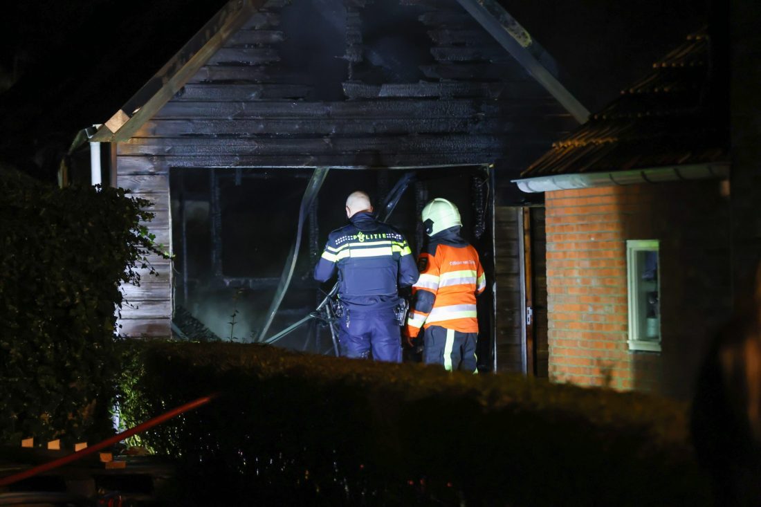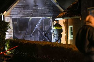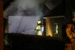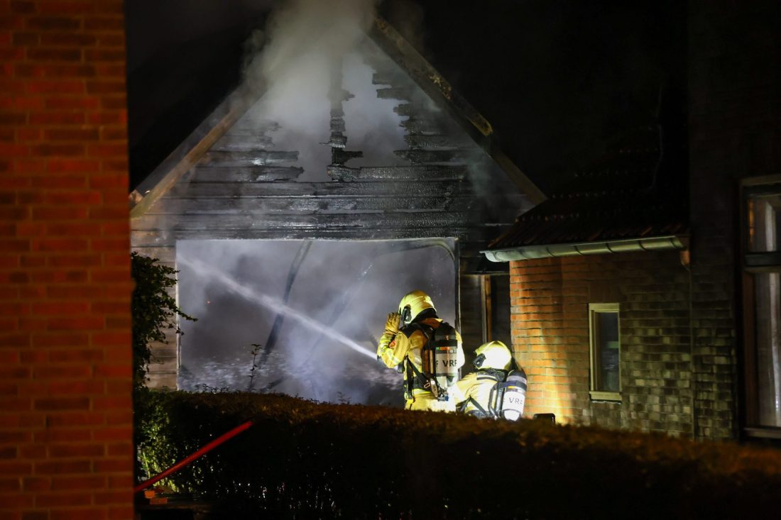 De brandweer rukte met meerdere voertuigen uit en had het vuur snel onder controle, maar kon niet voorkomen dat de garage volledig verloren ging.