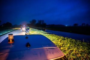 Bij aankomst troffen politie en ambulance een voertuig aan dat van de weg was geraakt en in de Opsterlandse Compagnonsvaart terecht was gekomen. Omstanders schoten direct te hulp. De automobilist kon zelfstandig uit het voertuig komen en is door het ambulancepersoneel behandeld. Het slachtoffer is vervolgens met de ambulance meegegaan.
