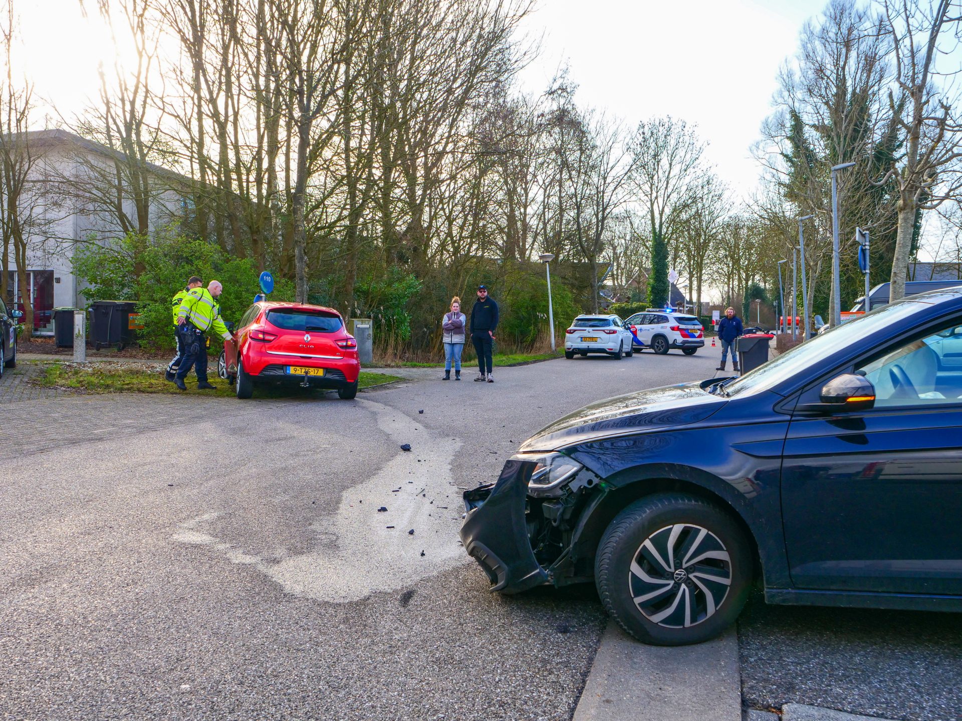 De schade aan beide voertuigen is aanzienlijk. De voertuigen worden geborgen.