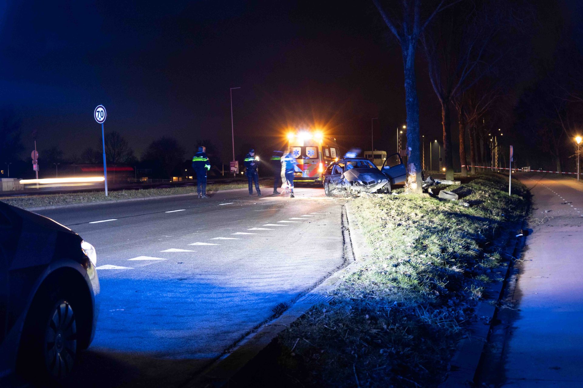 Het ongeval gebeurde omstreeks negen uur bij de Greunsbrug. Hoe het ongeval precies kon gebeuren is onduidelijk. De bestuurder raakte de macht over het stuur kwijt, reed een lantaarnpaal uit de grond en kwam tegen een boom tot stilstand. De bestuurder raakte gewond en is per ambulance naar het ziekenhuis vervoerd.