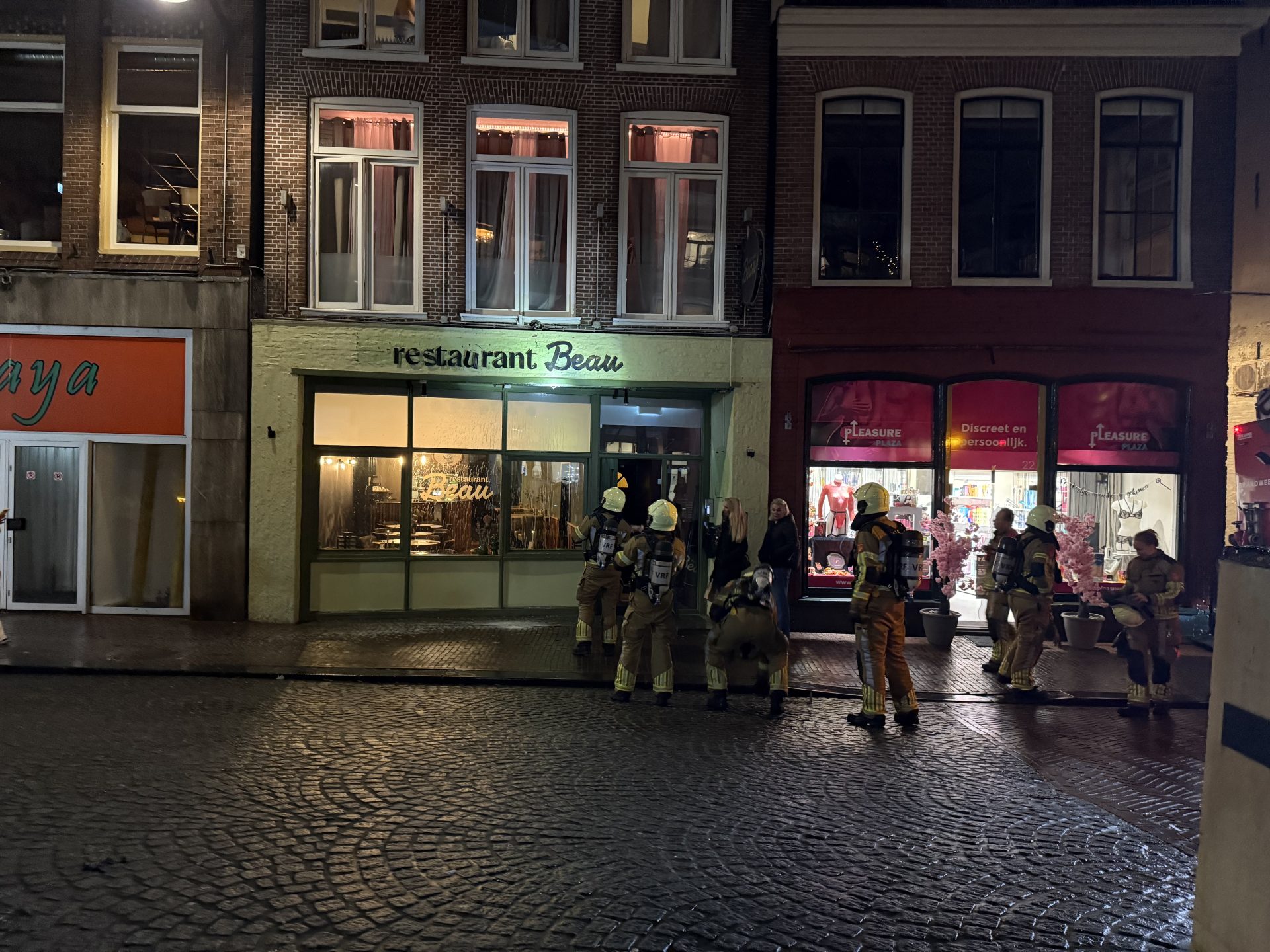 Er werd vanwege de melding brand bijeenkomst uit voorzorg direct groot alarm geslagen voor twee tankautospuiten en een hoogwerker. De eerste wagen kwam met spoed ter plaatse en kwam er al snel achter dat het brandje meeviel. Voor de zekerheid is nog wel even gekeken op de eerste verdieping van het pand.