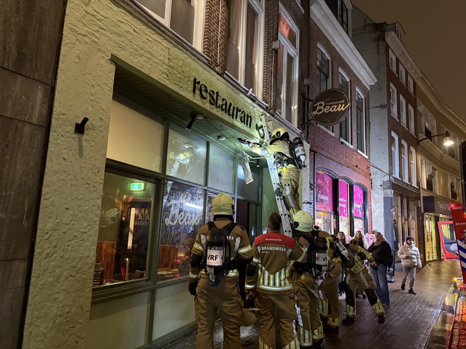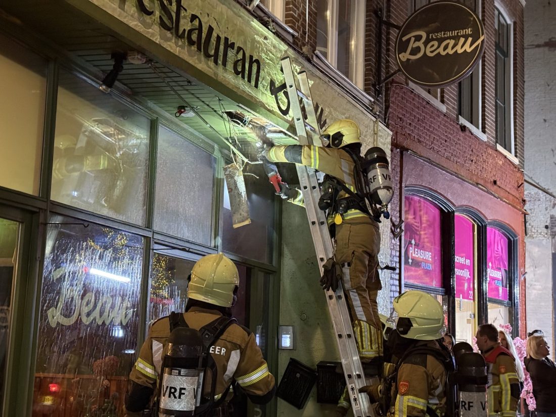 LEEUWARDEN – Donderdagmiddag rond half zes ontstond kortsluiting in de verlichting in de gevel van een restaurant aan de Kelders in het centrum.