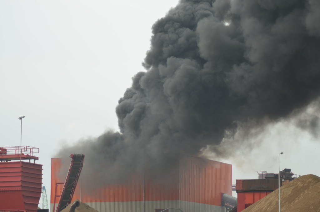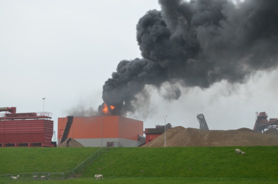 De brand brak rond acht uur uit door laswerkzaamheden in een loods waar transportbanden lagen opgeslagen. Het dak van de loods stortte door de brand in. Er zijn geen gewonden.