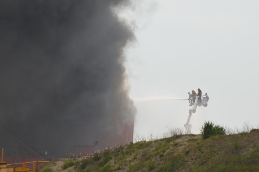 HARLINGEN – Bij Spaansen zand en grind op het industriehaven woedde dinsdagmorgen een grote brand.