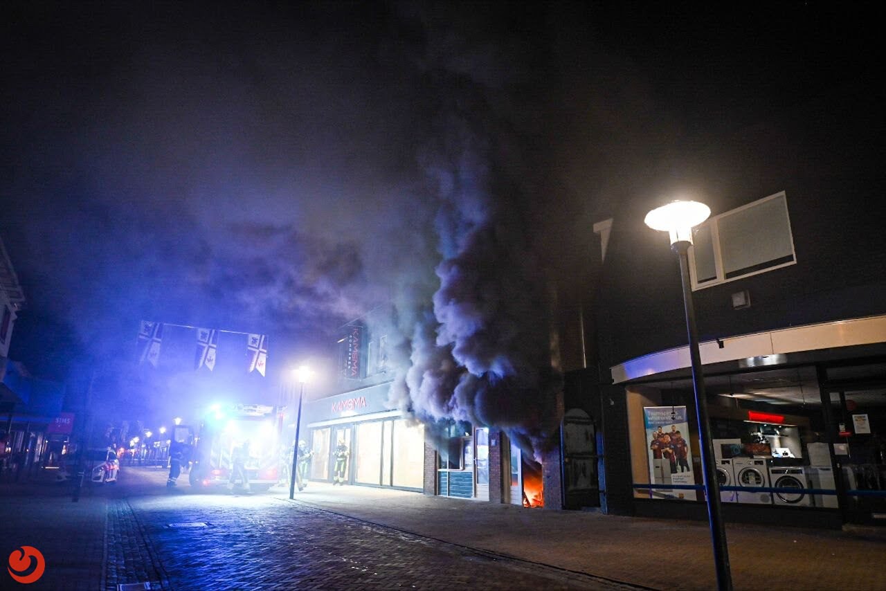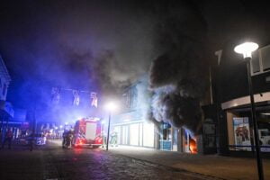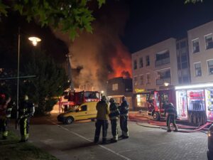 Update 01:15: De brand is weer opgelaaid, de vlammen slaan weer uit het pand.
