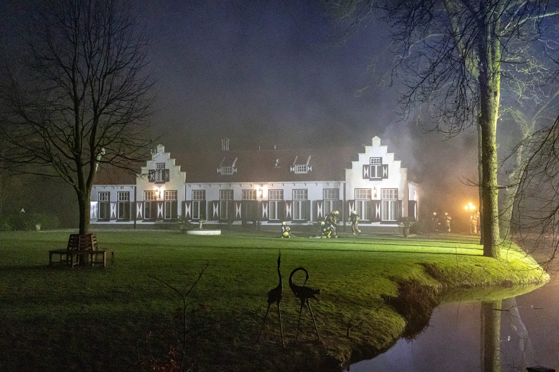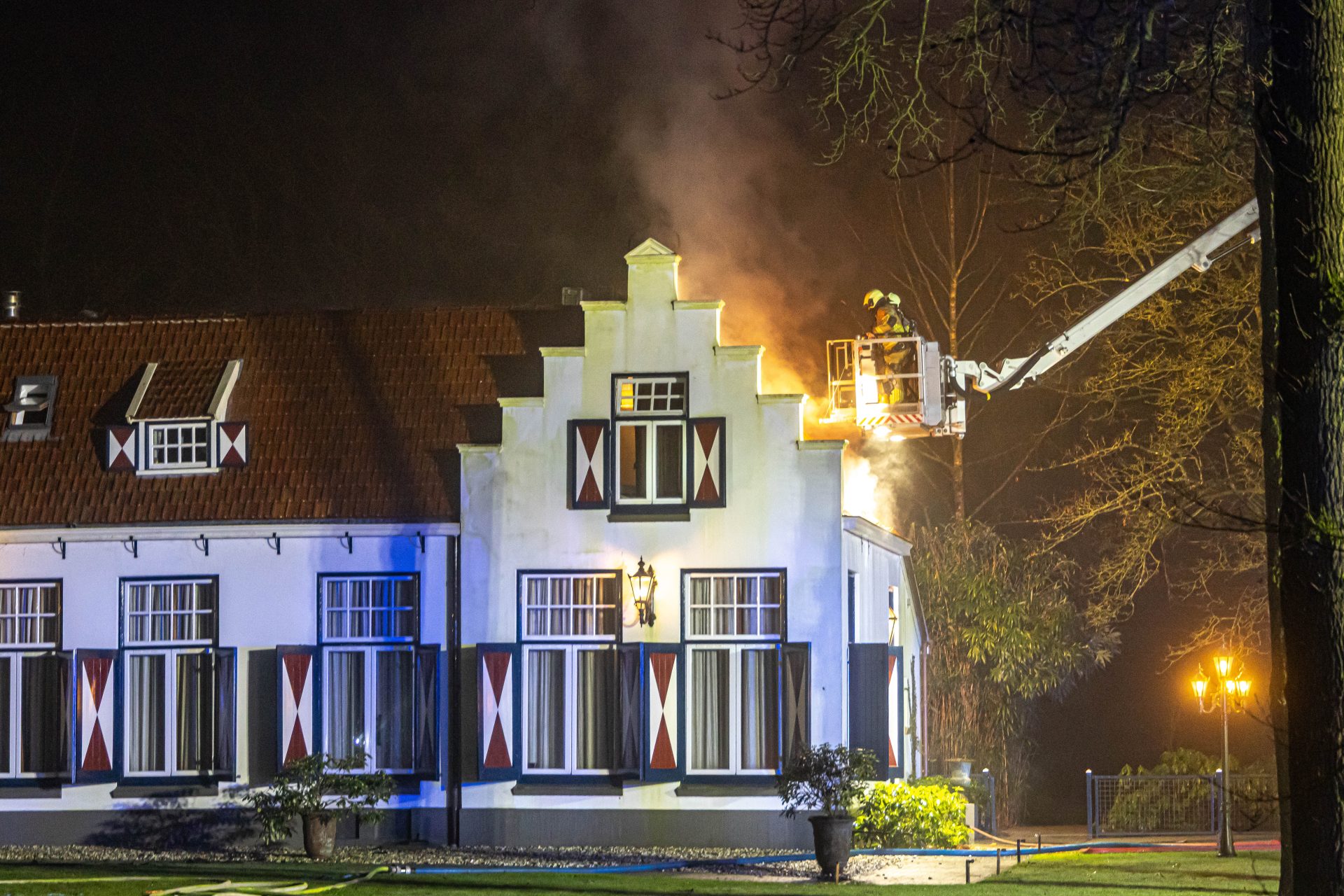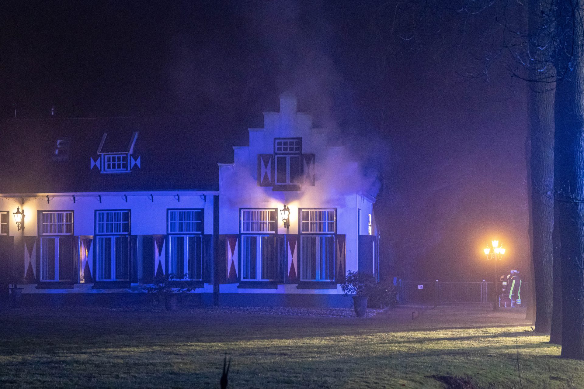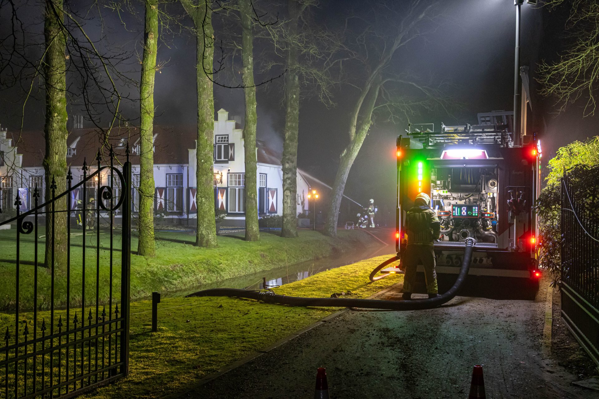 Volgens de brandweer hebben alle aanwezigen — mensen en dieren — het pand tijdig kunnen verlaten. Rook kwam zowel uit de eerste verdieping als uit het dak van het historische gebouw.