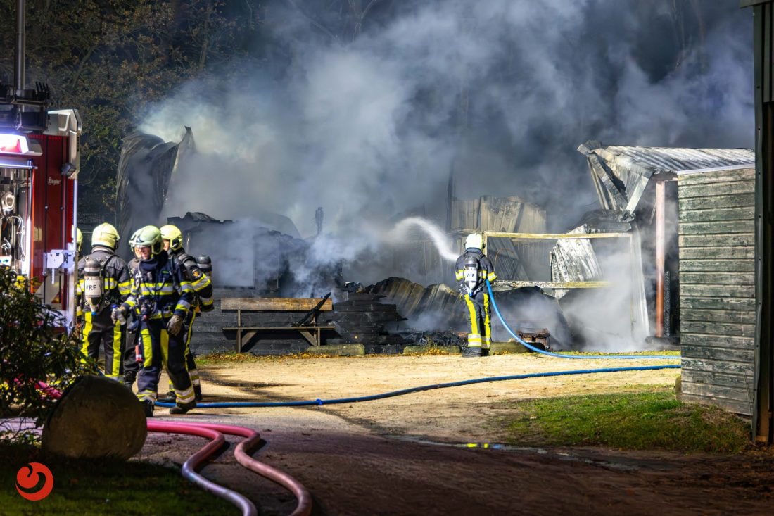 Vanwege de omvang van het vuur werd al snel opgeschaald naar middelbrand. Enkele minuten later, rond 00.10 uur, volgde opschaling naar grote brand. Ook een droneteam werd opgeroepen om het terrein vanuit de lucht in kaart te brengen en de brandweer te ondersteunen.