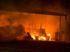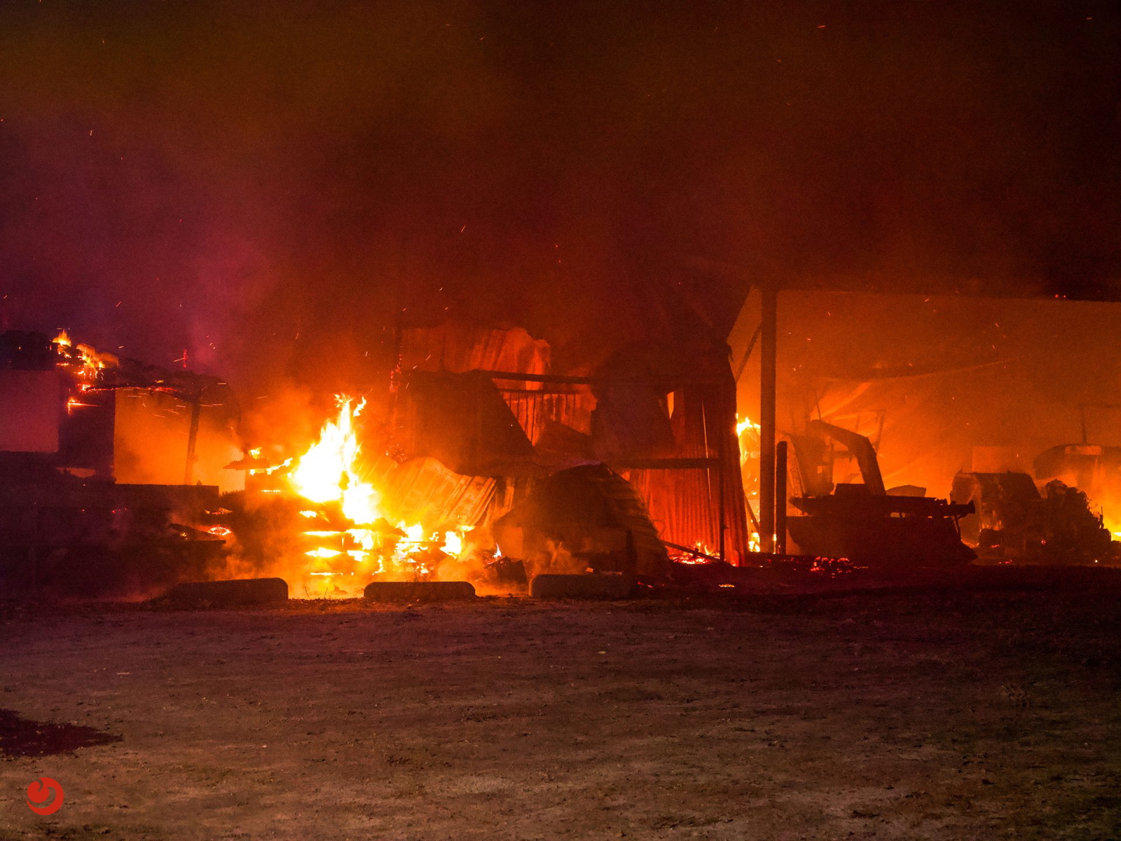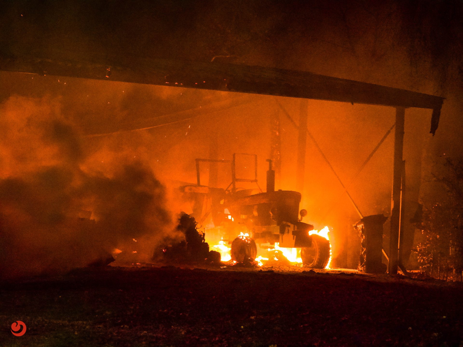In de schuur stonden verschillende spullen in brand en ook een tractor.