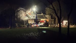 FOUDGUM – In een woonboerderij aan De Terp is dinsdagavond een grote uitslaande brand uitgebroken. De brand ontstond rond 18.00 uur in de schoorsteen, maar breidde zich snel uit naar de rest van de woning.