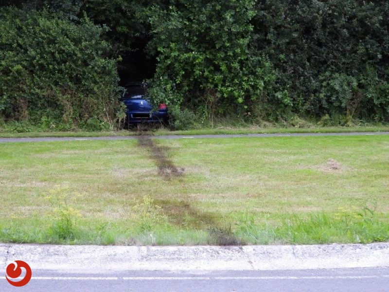 Omstreeks kwart voor negen verloor de bestuurder de macht over het stuur, reed rechtdoor over een rotonde en belandde uiteindelijk tientallen meters verderop in de bosschages. Omstanders die het ongeval zagen gebeuren, belden meteen de hulpdiensten. Ter plaatse bleken de bestuurder en bijrijder er na het ongeval vandoor te zijn gegaan.