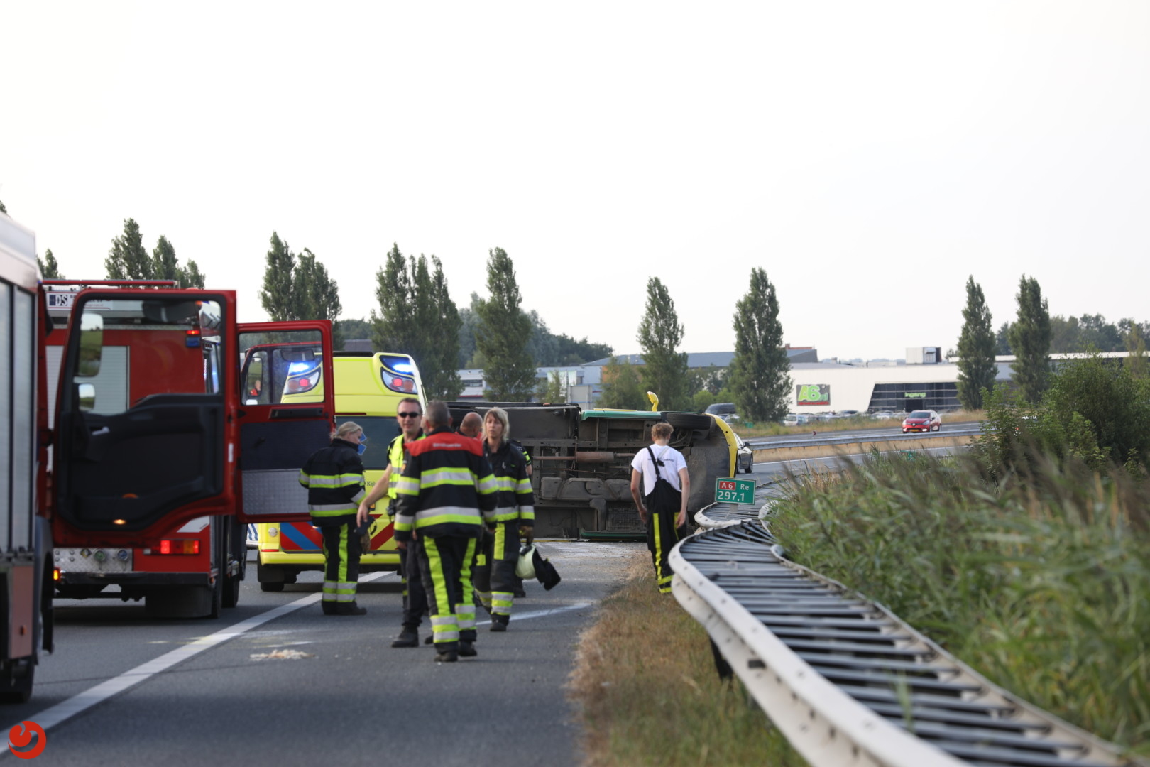 LEMMER – Op de A6 bij Lemmer is donderdag aan het begin van de avond opnieuw een voertuig op zijn kant terecht gekomen.