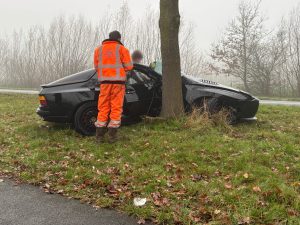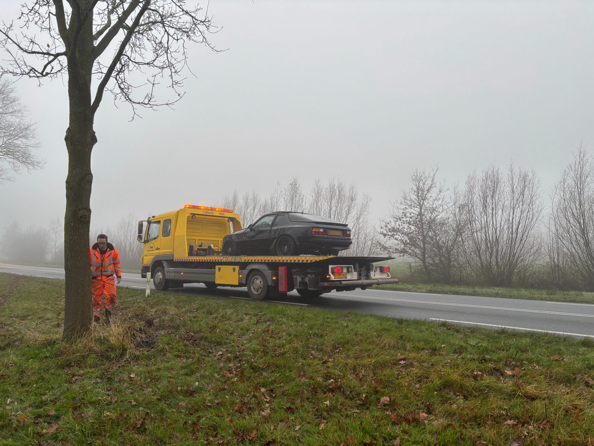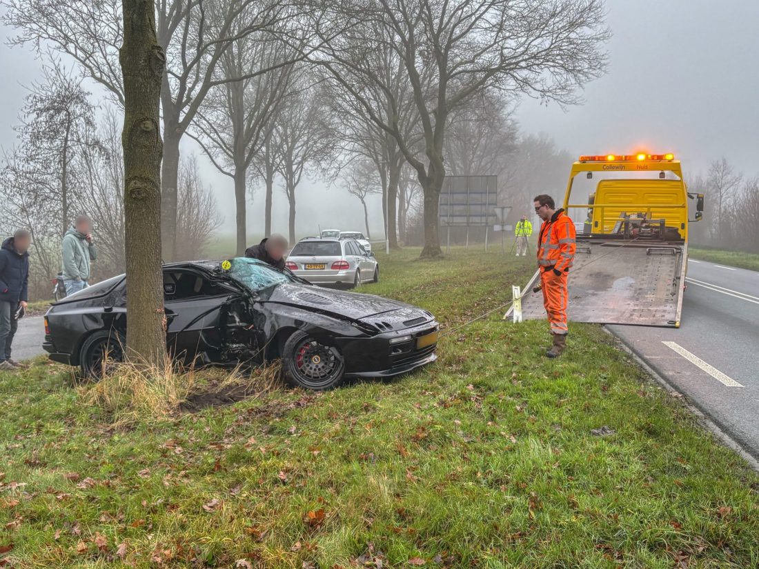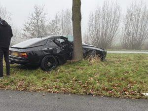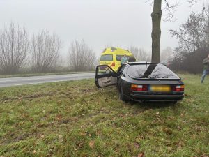 Een personenauto, een klassieke Porsche, raakte door nog onbekende oorzaak van de weg en botste tegen een boom. Politie en ambulance kwamen met spoed ter plaatse om hulp te verlenen aan de bestuurder. Het slachtoffer is behandeld door ambulancepersoneel en met verwondingen aan het hoofd over gebracht naar het ziekenhuis.