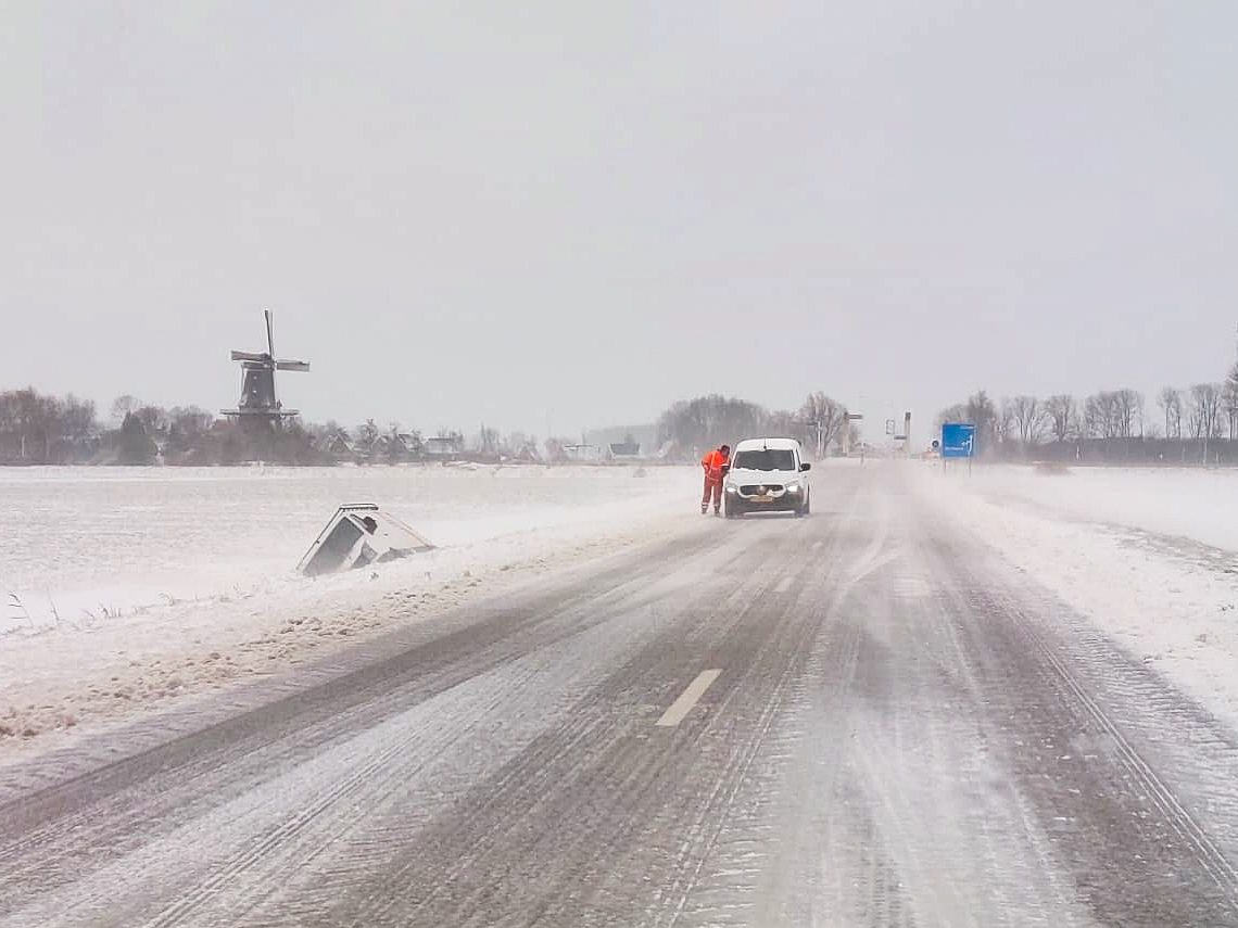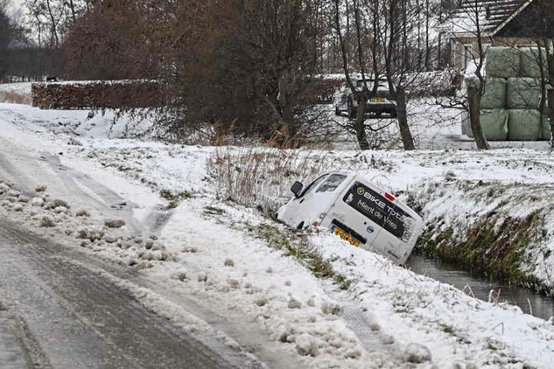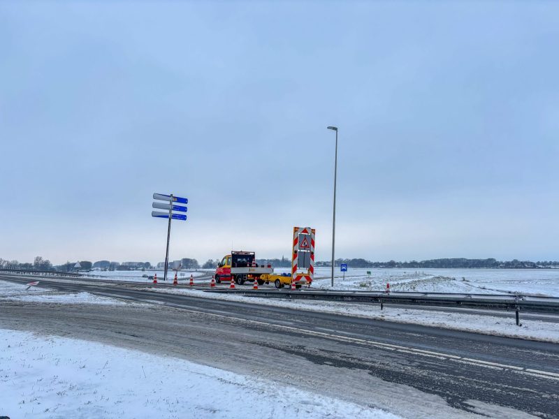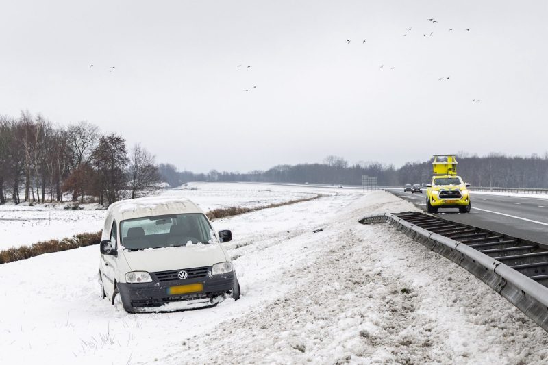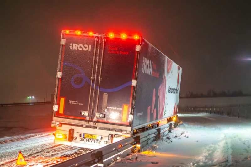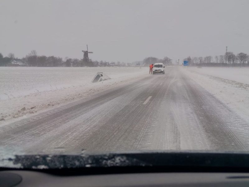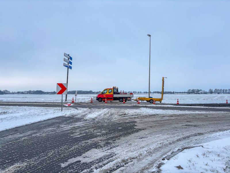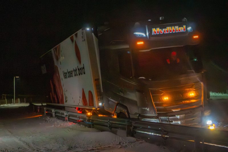Appelscha – Op de N381, tussen Hoogersmilde en Appelscha, in de richting van Appelscha, is vrijdagochtend een vrachtwagen vast komen te zitten. Door gladheid op de weg raakte het voertuig van de rijbaan en kwam in de berm tot stilstand.