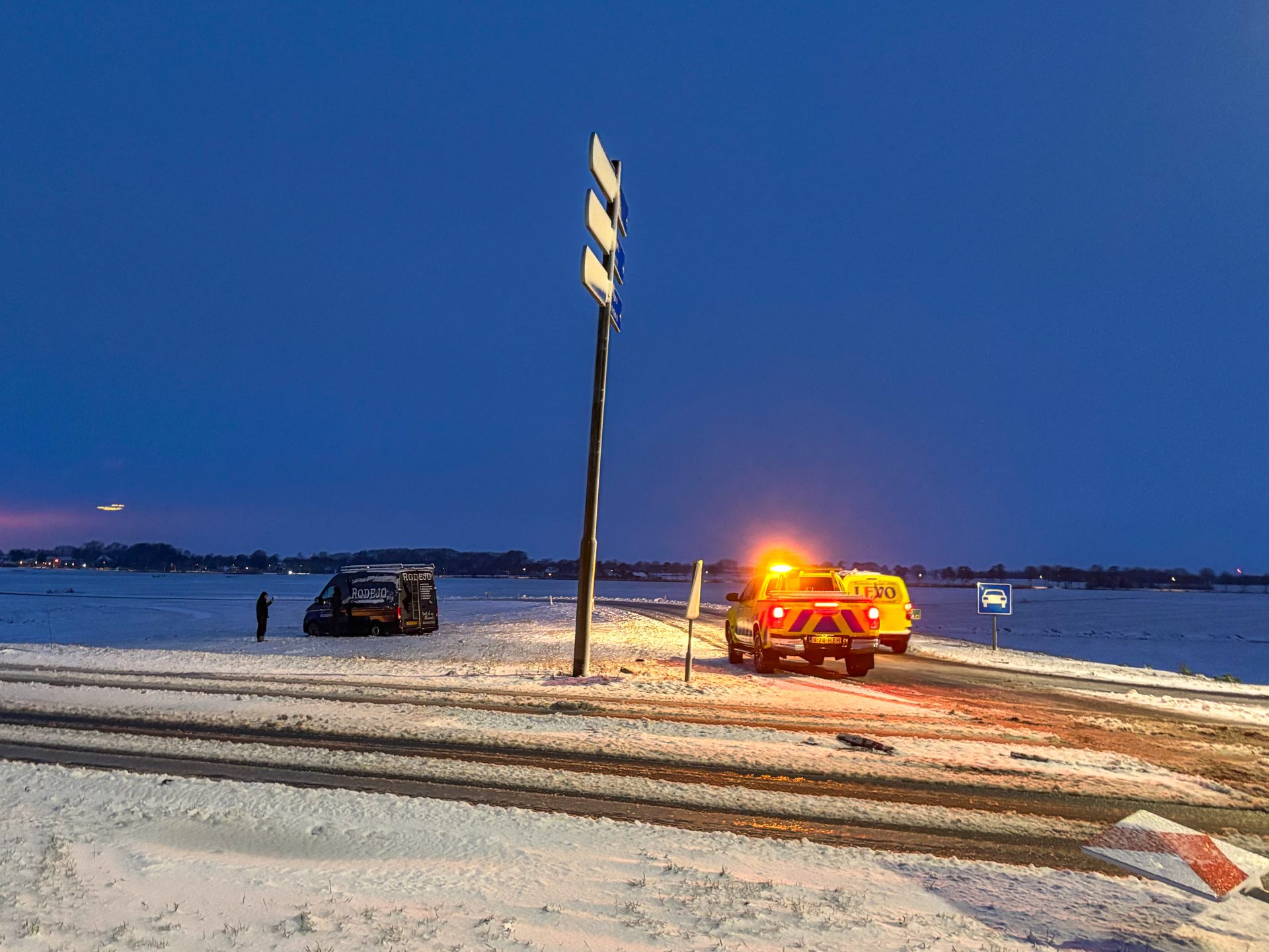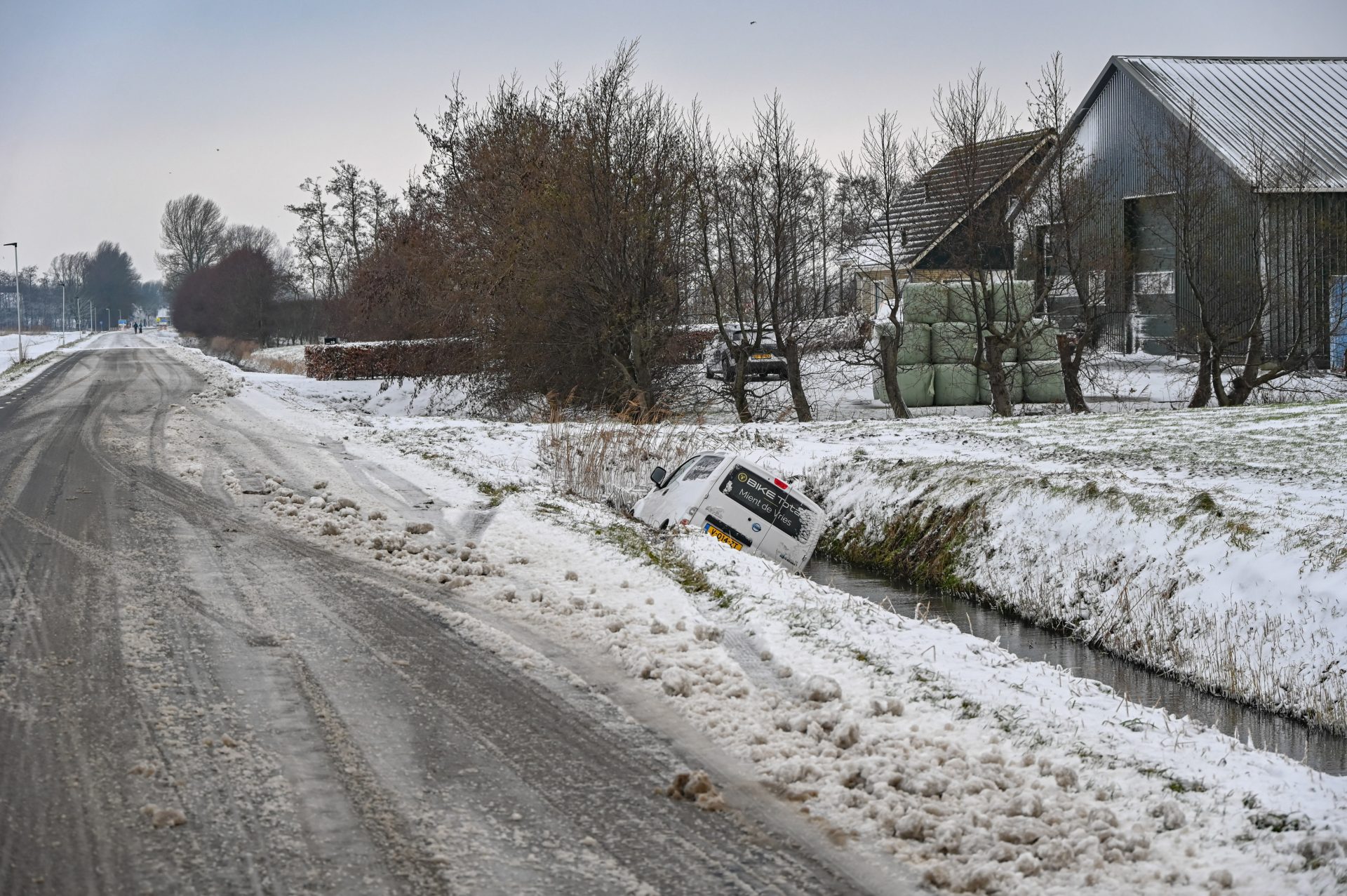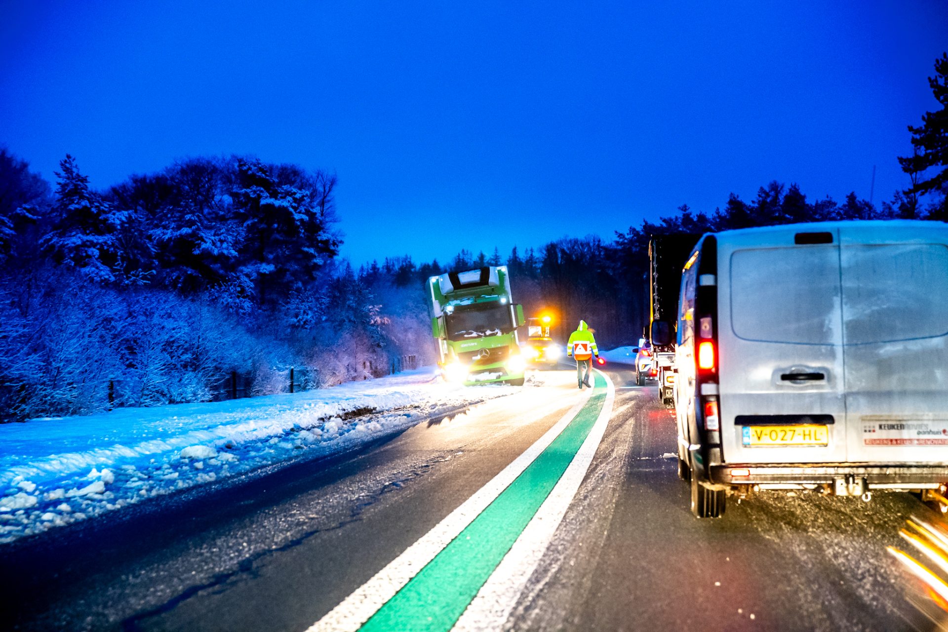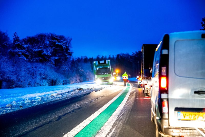 Appelscha – Op de N381, tussen Hoogersmilde en Appelscha, in de richting van Appelscha, is vrijdagochtend een vrachtwagen vast komen te zitten. Door gladheid op de weg raakte het voertuig van de rijbaan en kwam in de berm tot stilstand.