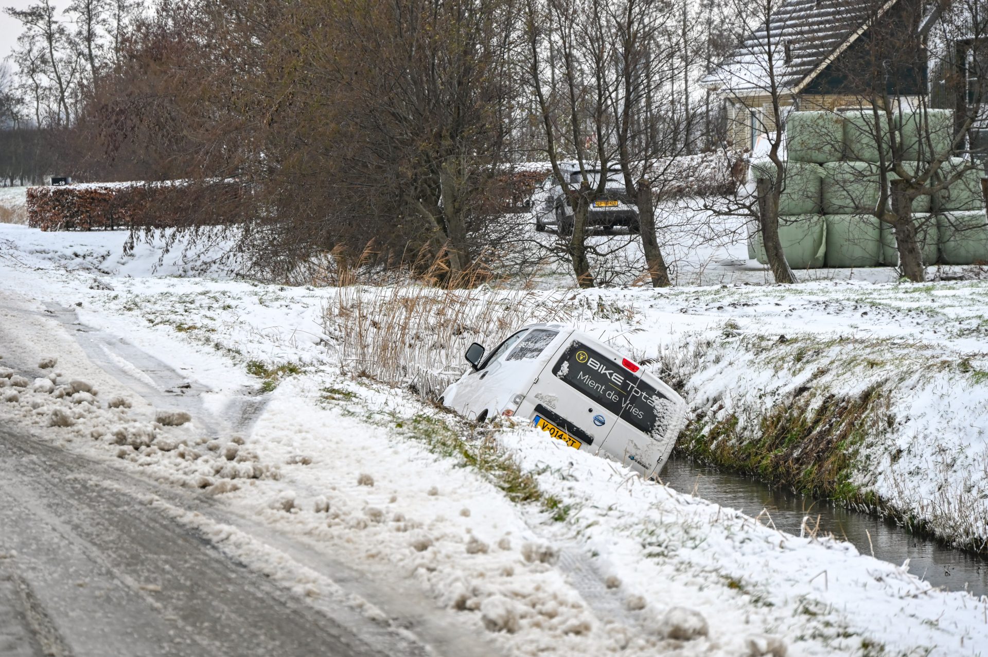 De vrachtwagenchauffeur kwam hierdoor vast te zitten met zijn voertuig. De provincie is momenteel ter plaatse en heeft een wegafzetting geplaatst om de situatie veilig af te handelen. Het verkeer kan om en om langs de vastgelopen vrachtwagen rijden. Een bergingsbedrijf is onderweg om de vrachtwagen uit de berm te halen.