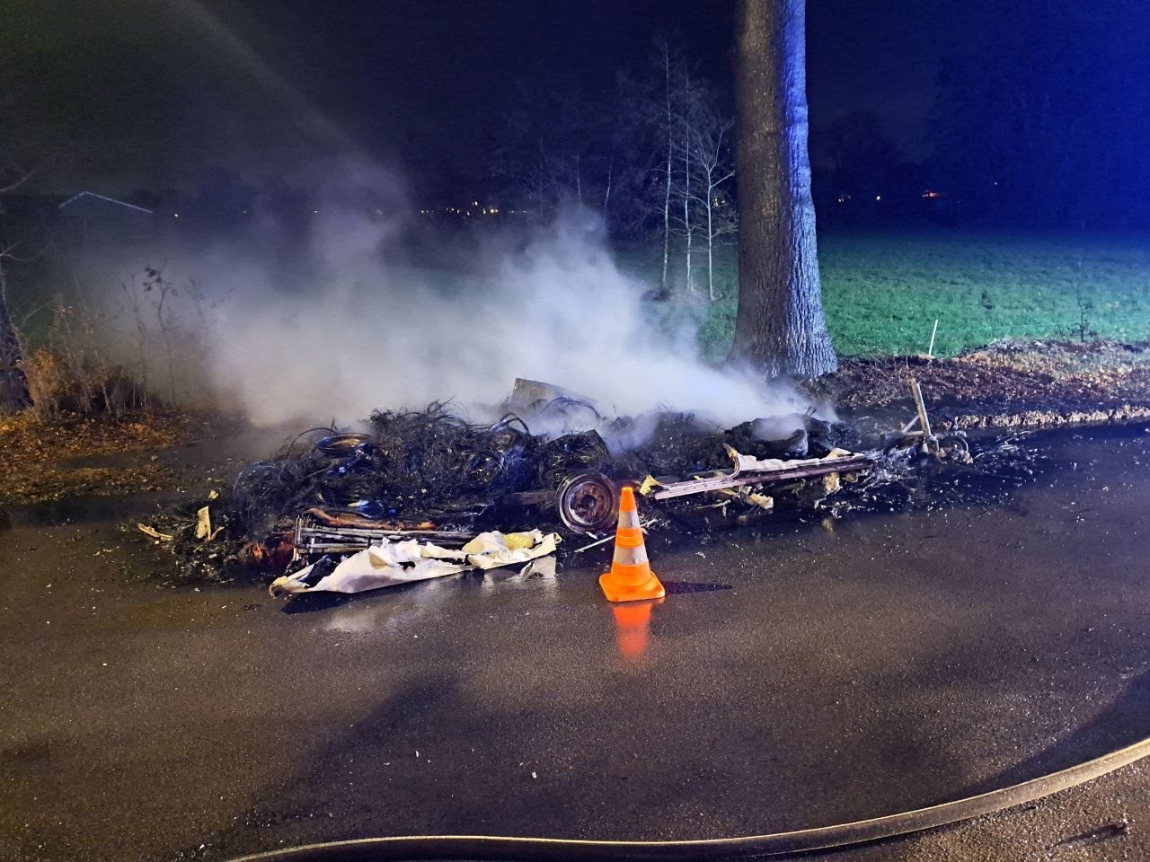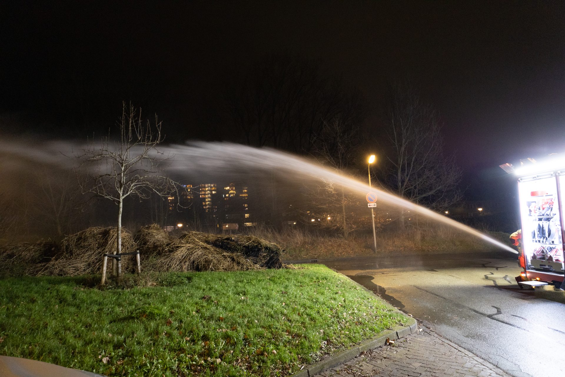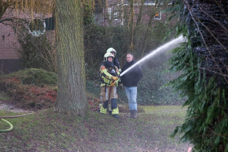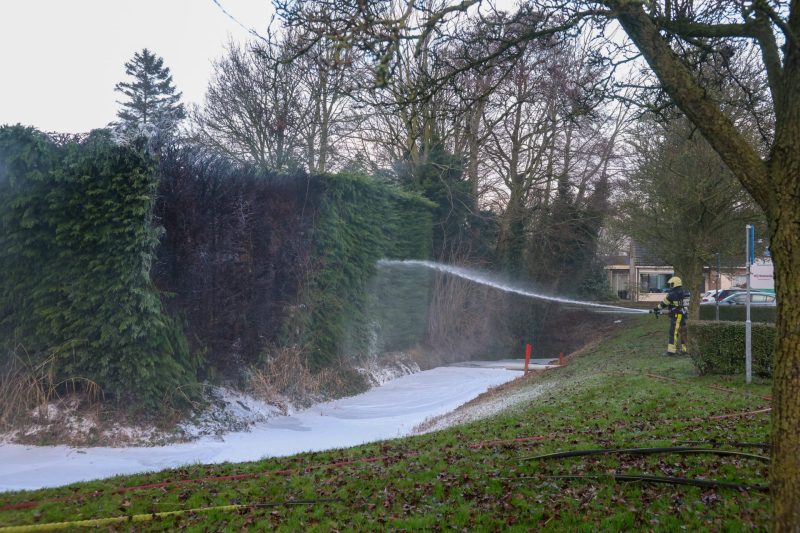 Met een waterkanon kon het vuur snel worden gedoofd en het overige snoeiafval nat worden gemaakt, om te voorkomen dat dit later ook nog vlam kan vatten. Na een half uur kon de brandweer terug naar de post.