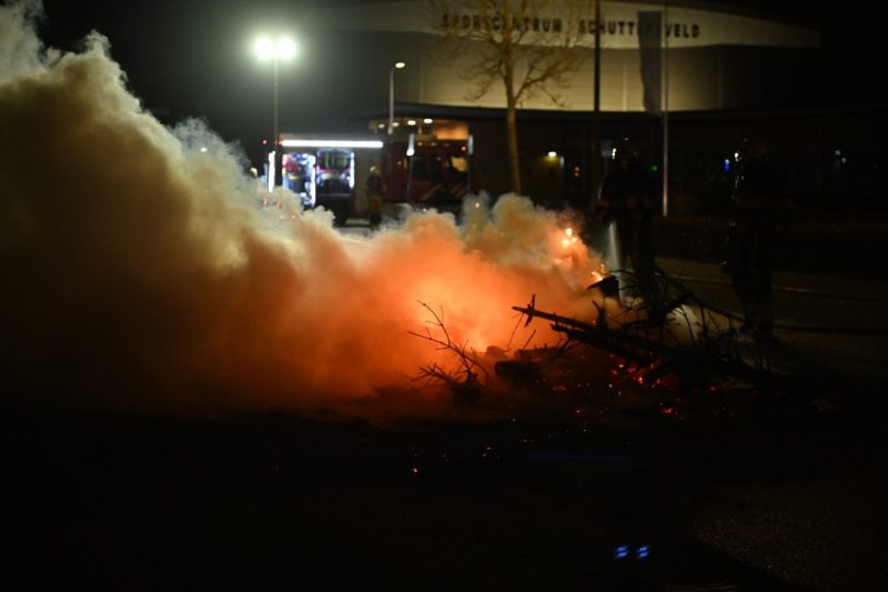 Rond 20:30 uur zijn de spuitgasten opnieuw uitgerukt, dit keer naar het terrein van sportcentrum Schuttersveld in Sneek. Vuil, kerstbomen en andere rotzooi is hier in brand gestoken. De brandweer heeft alles afgeblust.