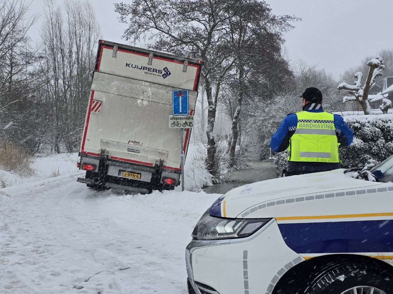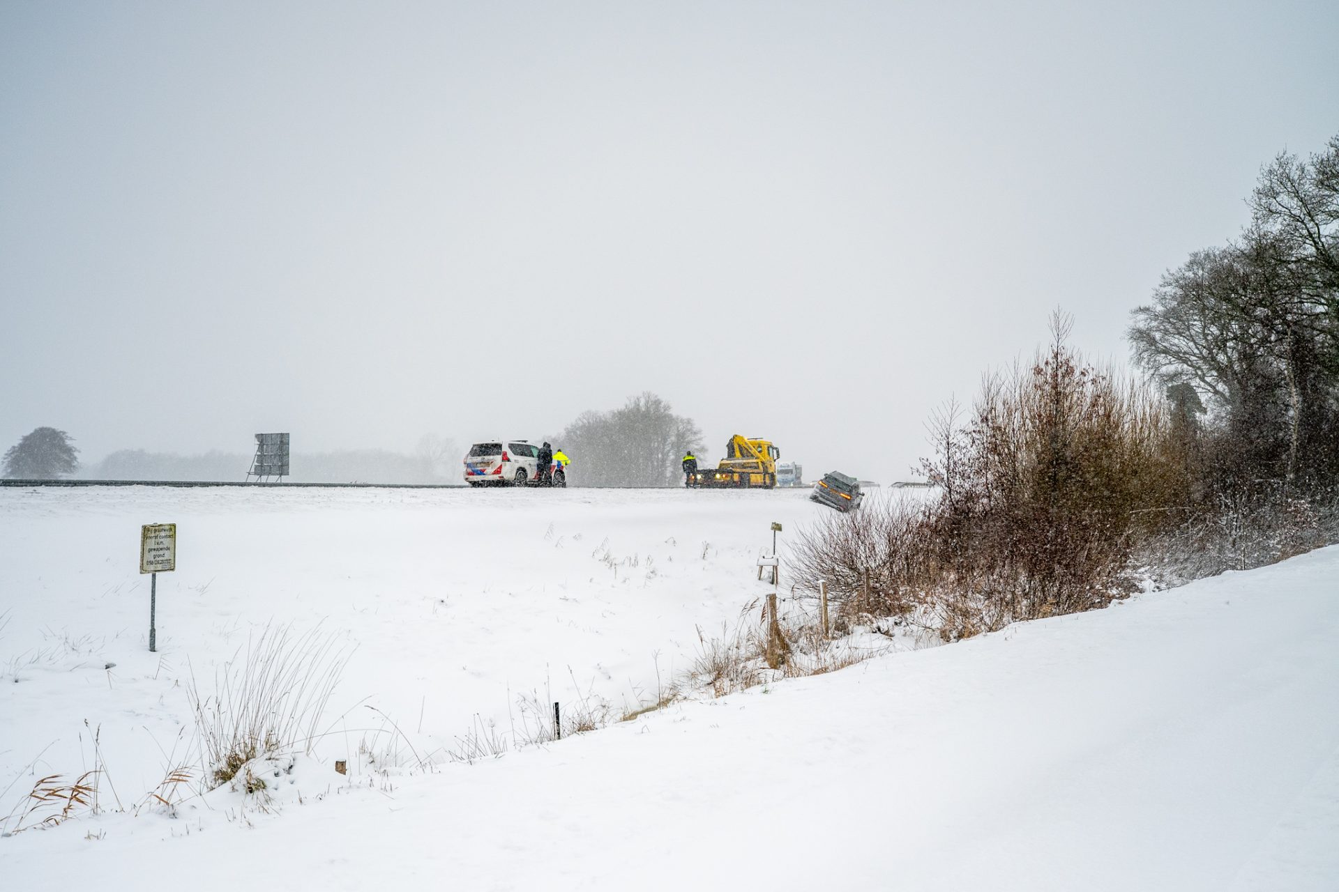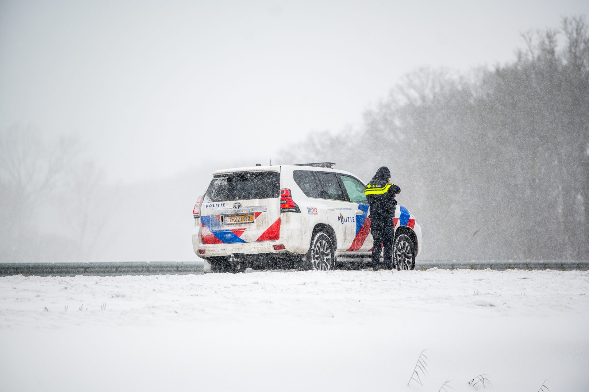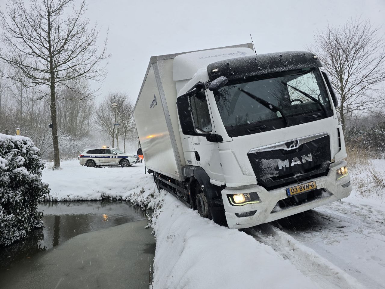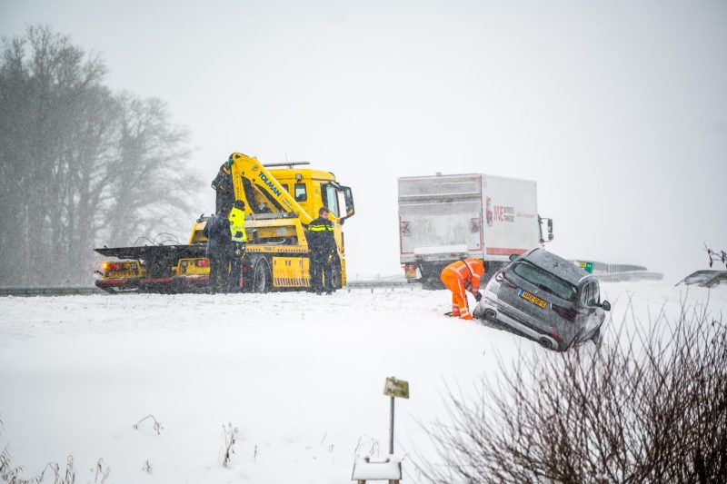 Door gladheid en sneeuwval raakte de automobilist de controle over het voertuig kwijt, waarna de auto van de weg raakte en in de sneeuw tot stilstand kwam in de berm. De bestuurder kwam met de schrik vrij en raakte niet gewond.