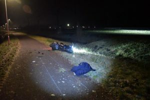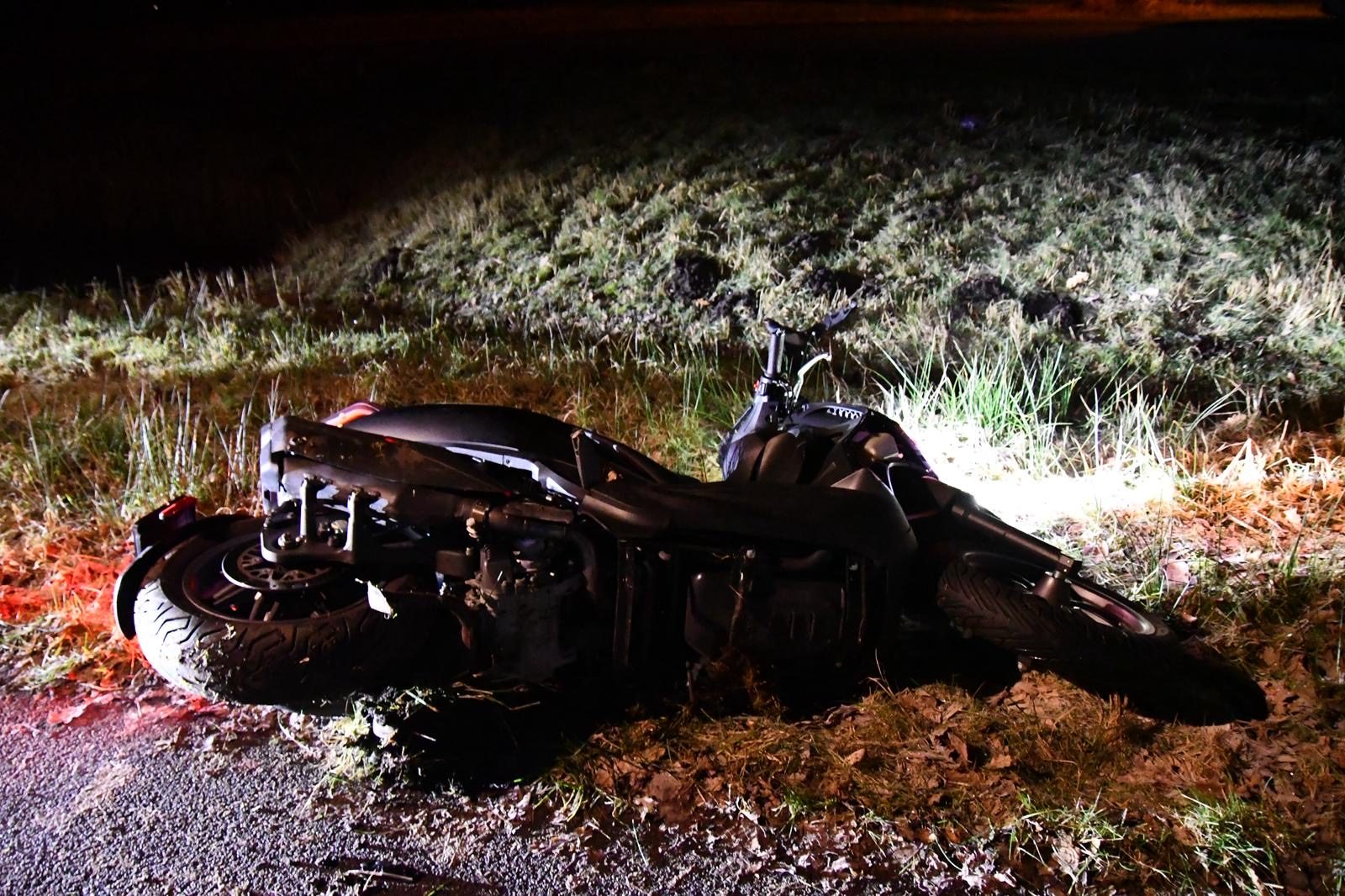 Door de val lag het fietspad bezaaid met persoonlijke spullen en onderdelen van de motorscooter. Een berger heeft het beschadigde voertuig meegenomen.