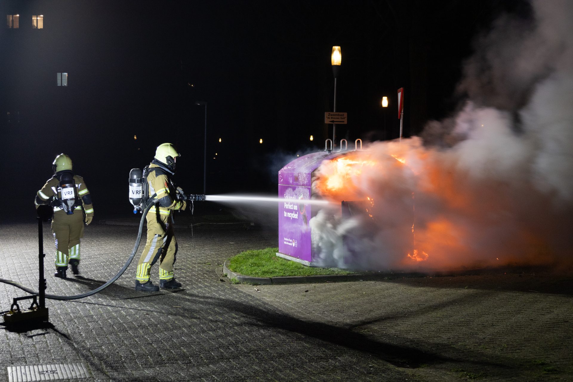 Met blusschuim werd het vuur onder controle gebracht. Alle kleding in de container is verloren gegaan.