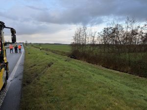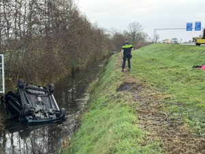 HURDEGARYP – Op de Noarder Omwei N355 bij Hurdegaryp is dinsdagochtend een auto te water geraakt.