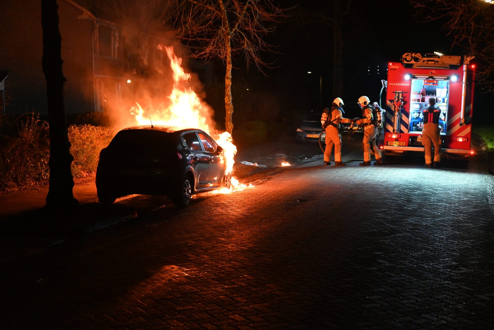 De auto stond geparkeerd in de Vincent van Goghstraat ter hoogte van de Van der Veldestraat. De brandweer en politie kwamen met spoed ter plaatse.