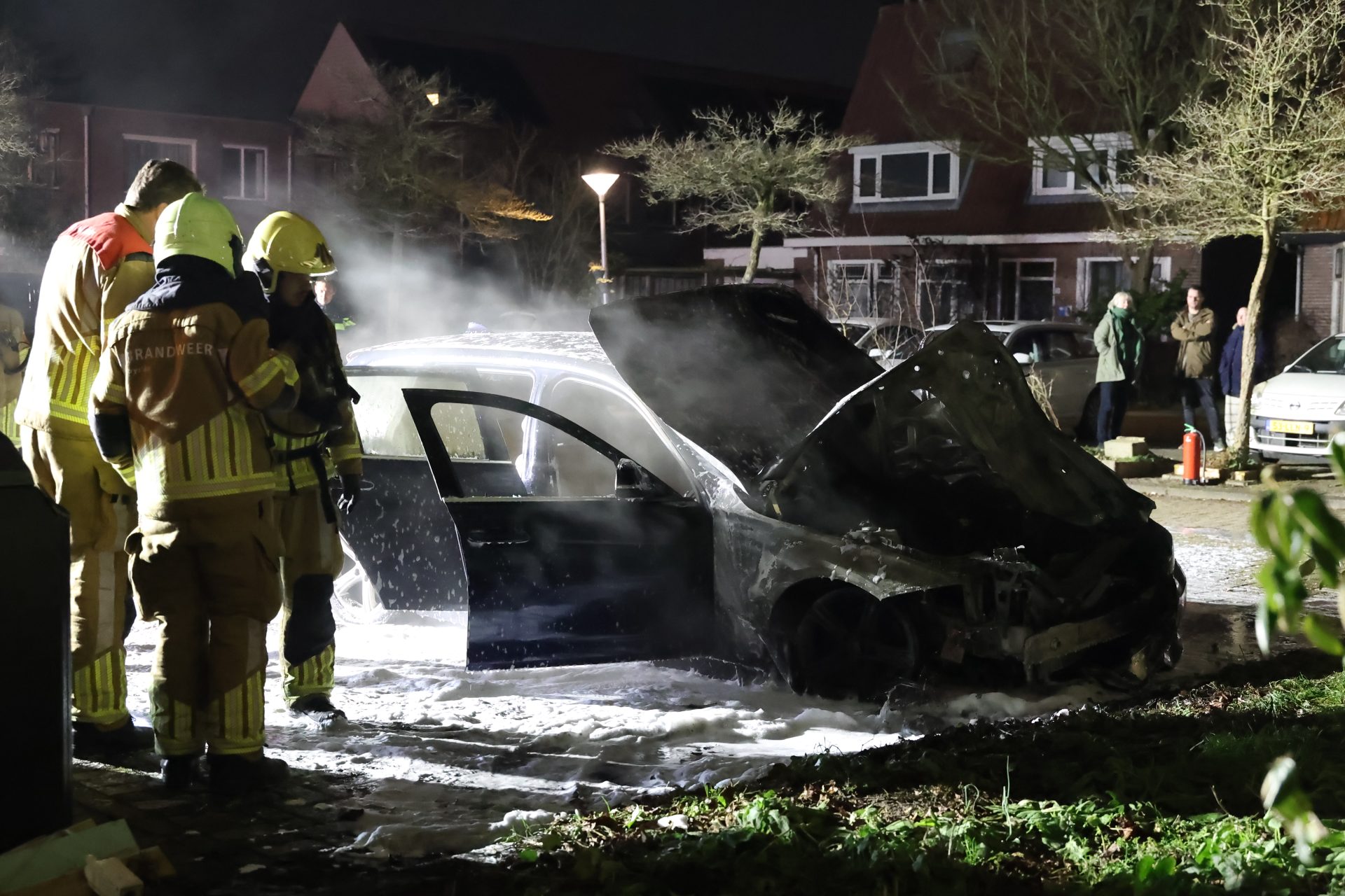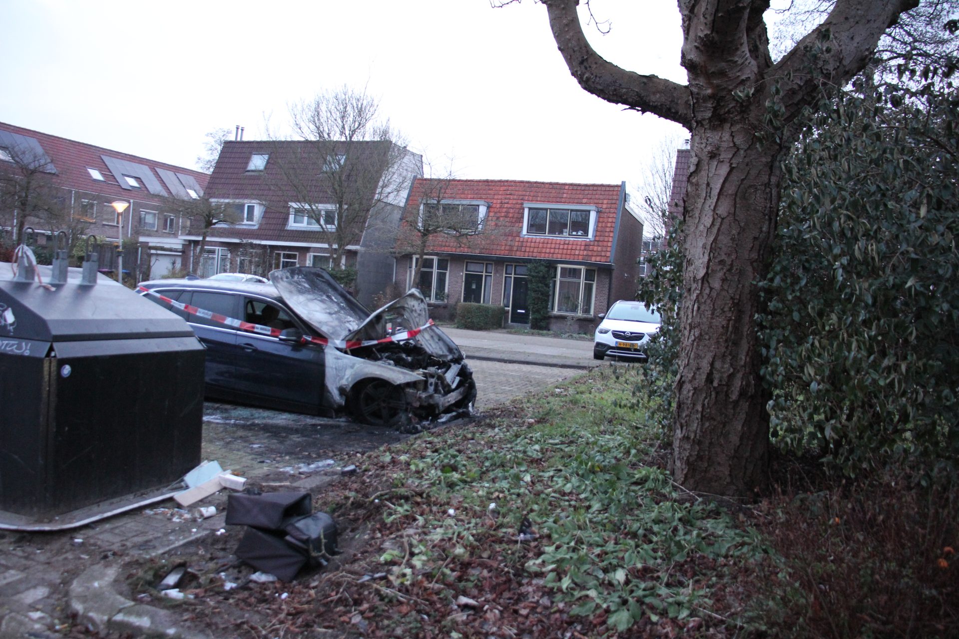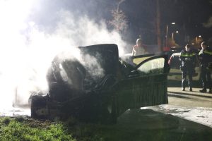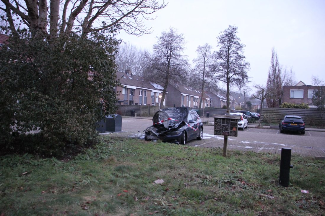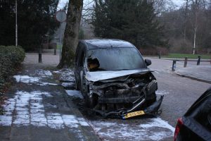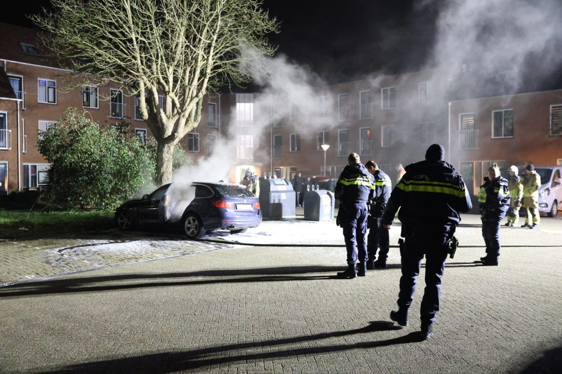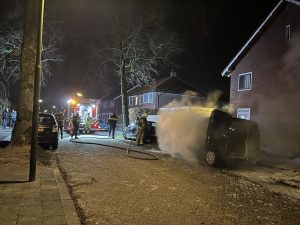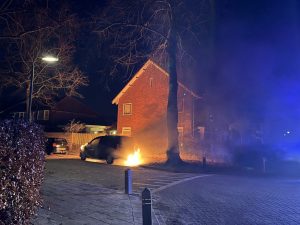 Rond 4:20 uur was het opnieuw raak in de Gerard Terborchstraat. Daar stond een auto al in lichterlaaie bij aankomst en van de brandweer.